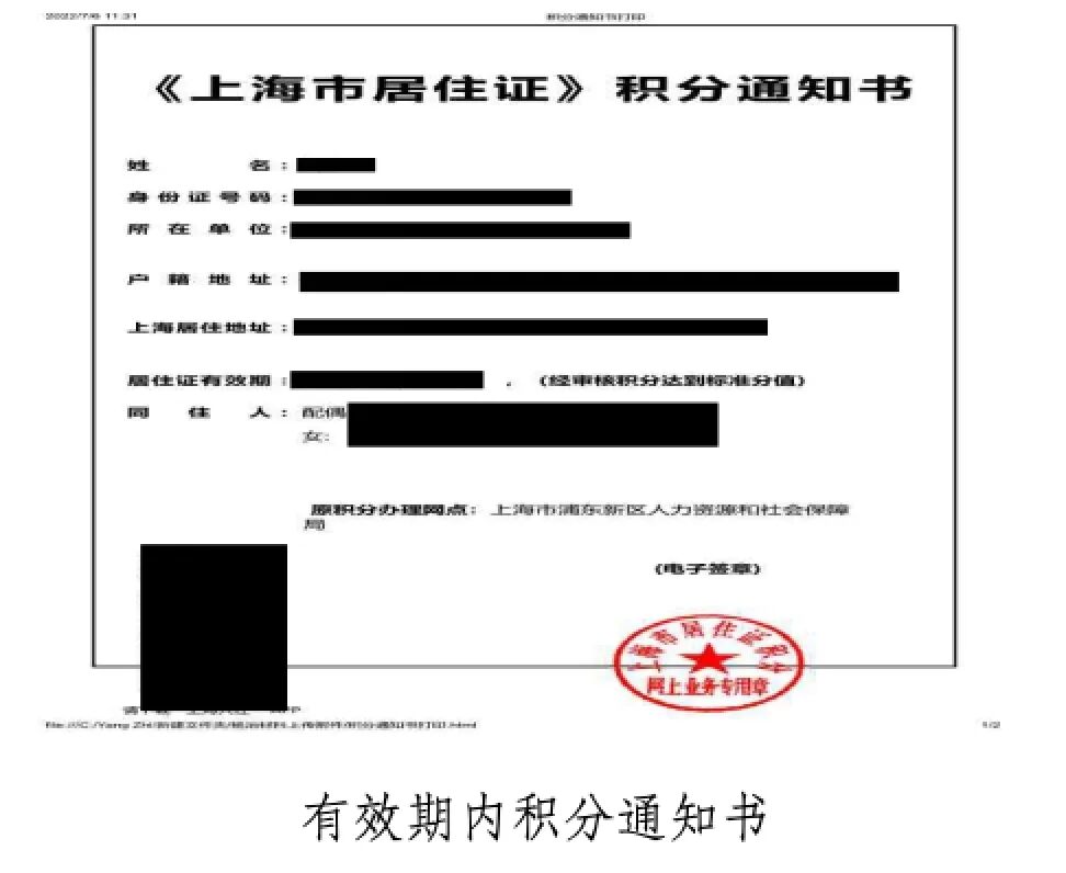 4.父母一方持有效期内《上海市居住证》(居住证上的居住地址在本区)且积分达标准分值的适龄幼儿: