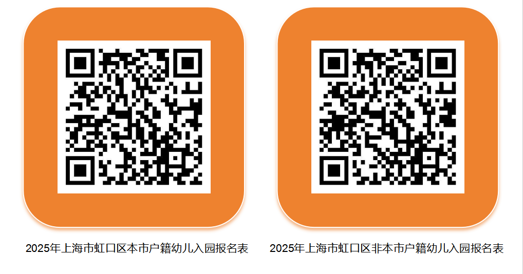 5月7日—5月20日,适龄幼儿监护人通过“上海一网通办”网站首页“2025年适龄幼儿入园”特色专栏或“随申办”移动端首页热门服务“2025年适龄幼儿入园”,在“上海市适龄幼儿入园信息登记系统”中找到虹口区报名入口,进入“上海市虹口区适龄幼儿入园报名系统”,完成信息填写、证照上传、园所报名,获取并打印《上海市虹口区适龄幼儿入园报名表》(以下简称《报名表》)。“随申办”移动端或“上海一网通办”网站中的电子证照与纸质证件同等效力使用。