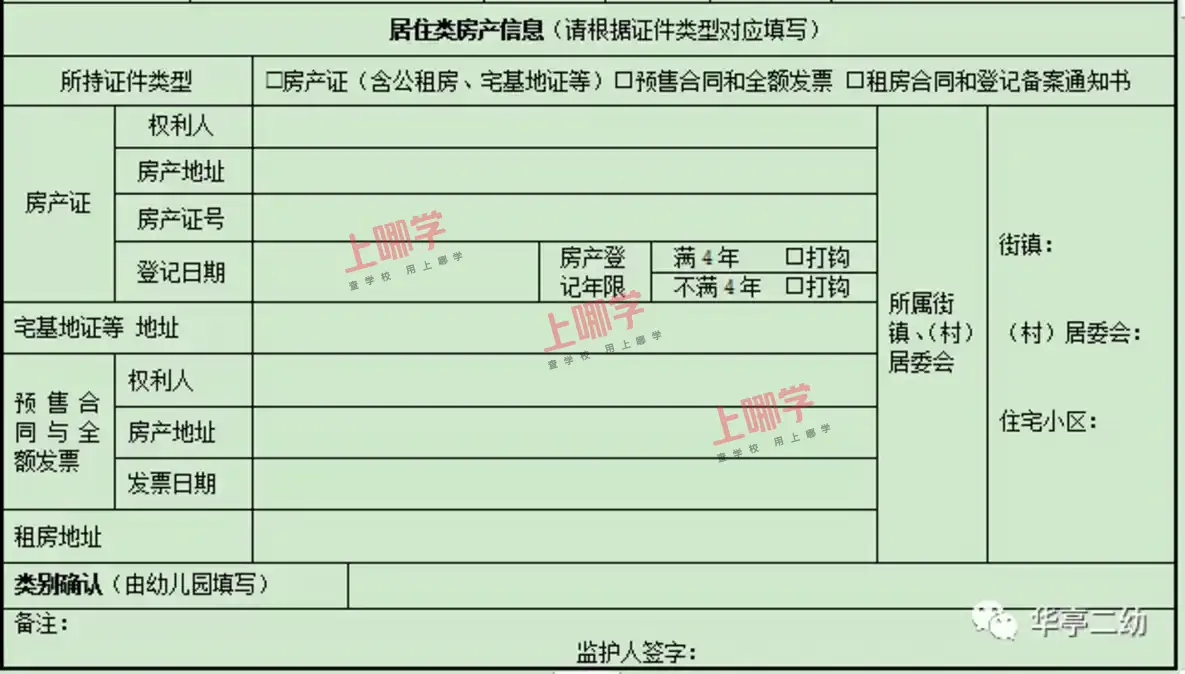 2.“居住类房产信息”:请根据幼儿法定监护人一方所持有的房产证件类型进行填写。
