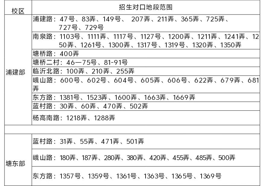 浦建居委:浦建路47号(东源大厦);浦建路83弄、85-125号、南泉路1320弄;南泉路1350弄;浦东南路2049号;塘严路13号、15号;塘桥路400弄(新塘桥生活广场) 塘桥居委:南泉路1300弄;塘桥二村46—75号 南城居委:临沂北路100弄、浦建路26弄、临沂北路210弄(盛族家园) 胡木居委: 峨山路635弄;605弄;塘桥新村44号、45号;峨山路681弄(越富豪庭);峨山路679弄(浦江映象) 南泉居委:南泉路1200弄; 南泉路1250弄; 塘桥二村81-91号;峨山路622弄、峨山路600号、602号、604号、606号 金浦居委:蓝村路502弄;浦建路207弄;浦建路211弄;南泉路1317号;南泉路1319号;南泉路1261号(金浦花园);东方路1600弄(春之声) 文兰居委:蓝村路470弄 兰高居委:蓝村路30弄;蓝村路60弄;东方路1381号(蓝村大厦);浦建路725弄(锦南花苑);浦建路727号(大康花苑或东方金座);东方路1523弄(金龙花园);浦建路365弄(金龙东苑) 贵龙居委:东方路1669弄、1663弄(贵龙苑) 龙阳居委:杨高南路1218弄(乔顿花园))、1288弄(中远行家) 龙园居委:北园路258弄(东方汇景苑)、 东方居委:临沂北路255弄(康乐花园),