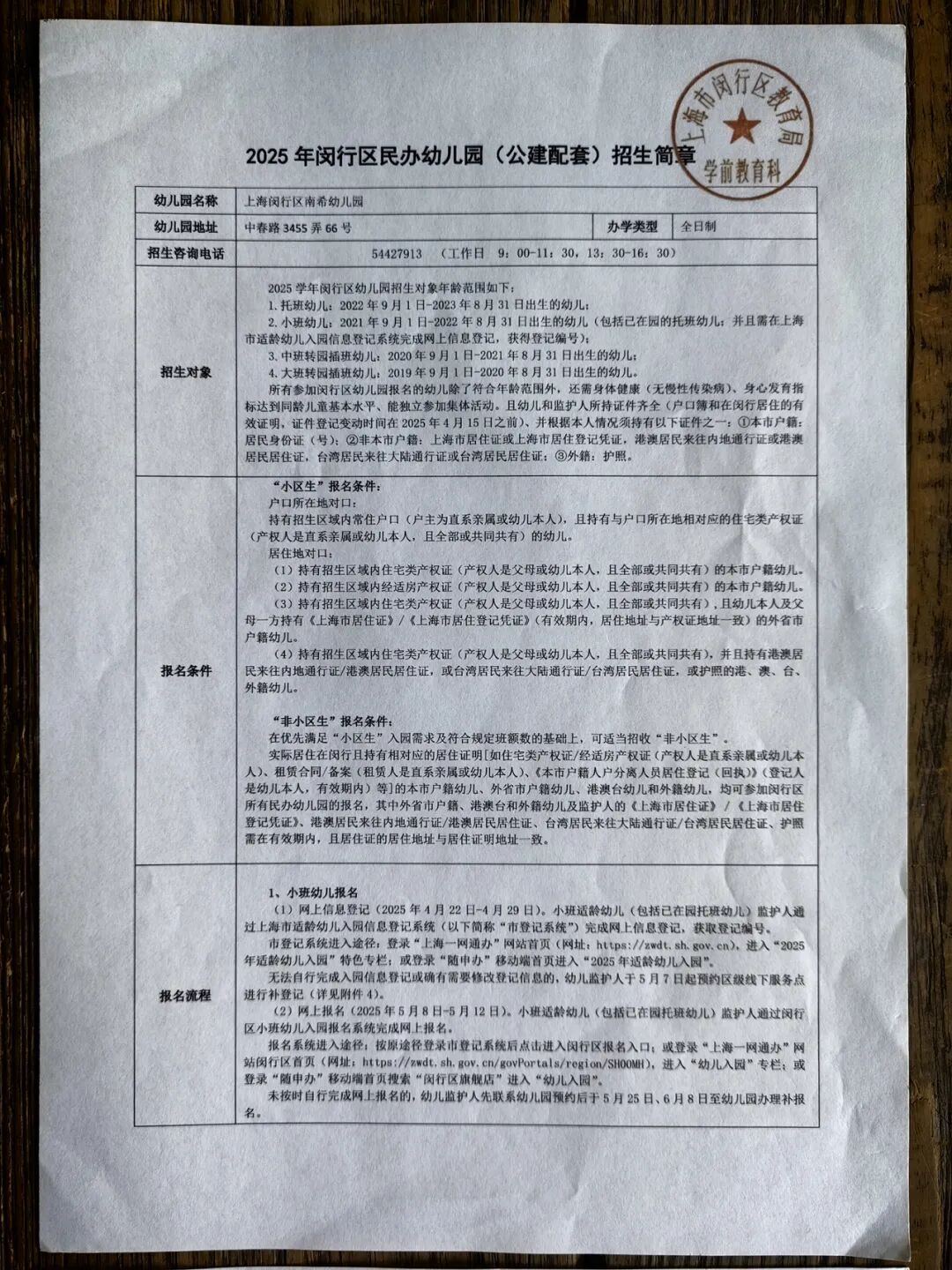 1.网上报名(2025年5月23日-5月26日)。幼儿监护人进入闵行区相应年龄段的幼儿入园报名系统(网址:https://yebm.mhedu.sh.cn)完成网上报名米按时自行完成网上报名的,幼儿监护人先联系幼儿园预约后于6月8日至幼儿园办理补报名。