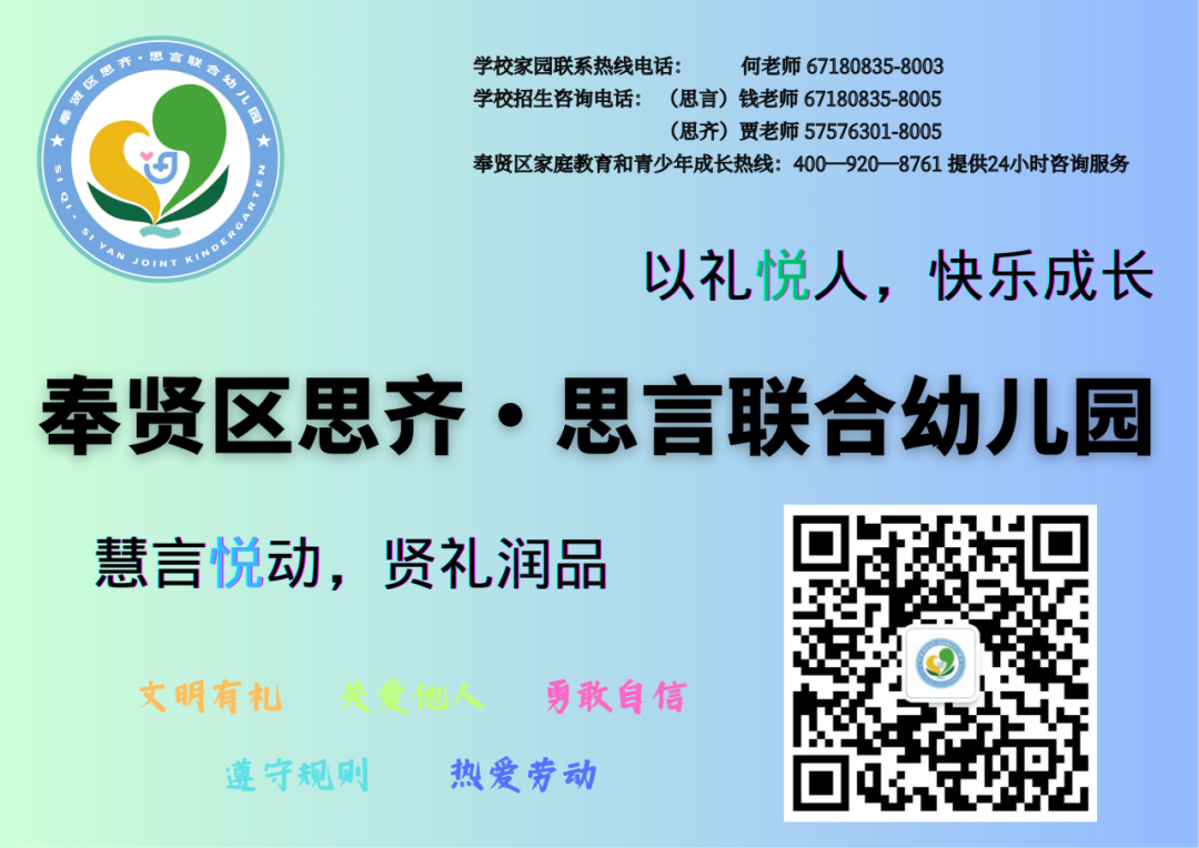 思齐幼儿园坐落于有着悠久“贤文化”历史的齐贤社区文明东街196号。2013年9月正式开学,2018年12月创建为上海市一级幼儿园。幼儿园秉承“敬奉贤人 见贤思齐”的优良传统,以“以礼悦人 快乐成长”为办园理念,以“礼仪教育”为办园特色,是一所管理全面、队伍专业、环境舒适、内涵丰富、家长满意,展现礼仪教育特色的公办一级幼儿园。幼儿园占地7700平方米,15班规模,园内环境优美,设施设备先进,是幼儿生活、运动、游戏、学习的乐园。 现根据《奉贤区教育局关于2020年学前教育招生工作的通知》要求,公布我园招生简章。请家长们注意时间节点。 一、招生对象: 2016年9月1日 —— 2017年8月31日间出生,身体健康(无慢性传染病)、能独立参加集体活动的本市户籍幼儿。 二、招生数量: 小班4个班级。 三、学区范围: 北至团汇公路、南至金大公路、东至浦星公路、西至金钱公路及百曲村。 四、提供材料(提供原件及复印件) 1、持学区内房产证的幼儿提供: ①学区内有效商品房房地产权证或不动产权证(产权人须是父母、适龄儿童本人,或祖父母、外祖父母,并拥有全部产权)。 ②能证明与产权人关系的户籍证明。 ③出生证明。 ④《2020年上海市奉贤区本市户籍幼儿入园报名表》⑤《奉贤区早教指导服务手册》 注:①-③原件及复印件,④⑤原件 2、持学区内村户口的幼儿提供: ①户籍证明(户主须是父母或祖父母、外祖父母,且适龄儿童户口应在认定户口上。挂靠户口(是指幼儿户口迁到除父母、祖父母或外祖父母以外其他户主)不予认可。 ②出生证明 ③《2020年上海市奉贤区本市户籍幼儿入园报名表》 ④《奉贤区早教指导服务手册》 注:①②原件及复印件,③④原件 3、 持学区内拆迁房的幼儿提供: ①学区内有效拆迁协议(拆迁人须是父母、适龄儿童本人,或者祖父母、外祖父母,并拥有全部产权)和房屋交房通知单 ②能证明与拆迁人关系的户籍证明 ③出生证明 ④《2020年上海市奉贤区本市户籍幼儿入园报名表》 ⑤《奉贤区早教指导服务手册》 五、现场报名验证时间及地点: 时间: 5月30日(周六) 8:30—11:00 13:00—16:00 5月31日(周日) 8:30—11:00 13:00—16:00 登记地点: 上海市奉贤区金汇镇文明东街196号 思齐幼儿园 六、操作流程: 本次小班幼儿操作流程分为信息登记、报名验证、录取通知三个阶段。到本园验证前,请于4月24日—4月30日,完成市级平台系统入园信息登记;5月8日-5月15日,完成网上平台报名,最后园所选择“上海市奉贤区思齐幼儿园”,并打印报名表。具体网址请关注《告家长书》。如网上入园信息登记有误,可在网上入园报名时进行修改。入园报名平台一旦确认信息和园所选择,不得修改。 6月底前,完成现场验证,符合本园招生要求的家长注册手机将会收到录取通知或入园告知短信,请按照短信内容提示操作,完成最终录取工作。 七、为做好疫情防控工作,请家长配合以下事项: 1、请家长严格按照注册手机上收到的短信提示时间到现场完成验证。 2、入园时,请做好个人的防护工作,带好口罩,提前在手机上准备好绿色健康码 ,持码进入,并配合保安人员完成测温和入园登记。 3、报名时仅需一位家长,不携带幼儿。 八、相关提示: 1、来沪人员随迁子女(包括持积分通知单人员)申请登记时间定于6月6、7日(周六周日),申请地点见教育局公告,具体细则请关注《2020年奉贤区学前教育阶段公办幼儿园来沪人员随迁子女积分入园指南》。 2、本区三所幼儿园开办特教班,为奉浦幼儿园、柘林幼儿园、金蔷薇幼儿园,关于特教班入学请关注相关幼儿园发布的招生信息。 思齐幼儿园招生咨询电话:57576301-8005 奉贤区教育局学前教育科 咨询电话:37597019 奉贤区教育局事务受理中心:57412726 更多讯息查询,请关注思齐幼儿园微信公众号!