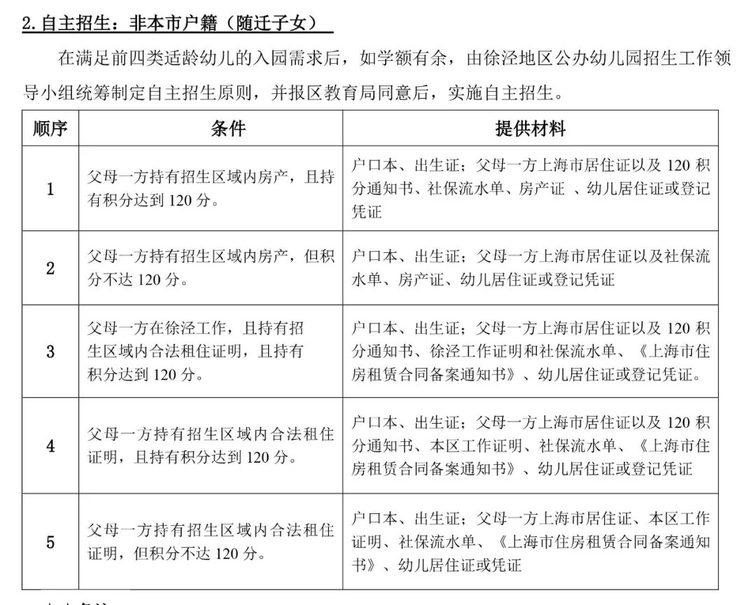 3.关于来沪随迁人员子女的入园:在保障本市户籍适龄幼儿入园基础上学额有余的,可依据来沪人员持房产、有效期内《上海市居住证》、积分达到标准分值、持有年限等条件设定优先顺序依次录取。幼儿须持有效期内《上海市居住证》或《居住登记凭证》。