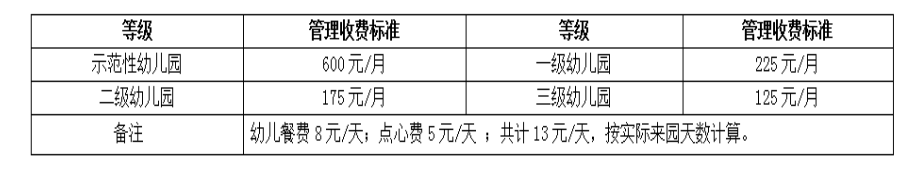 辰凯幼儿园属于一级幼儿园,管理费按225元/月收取。