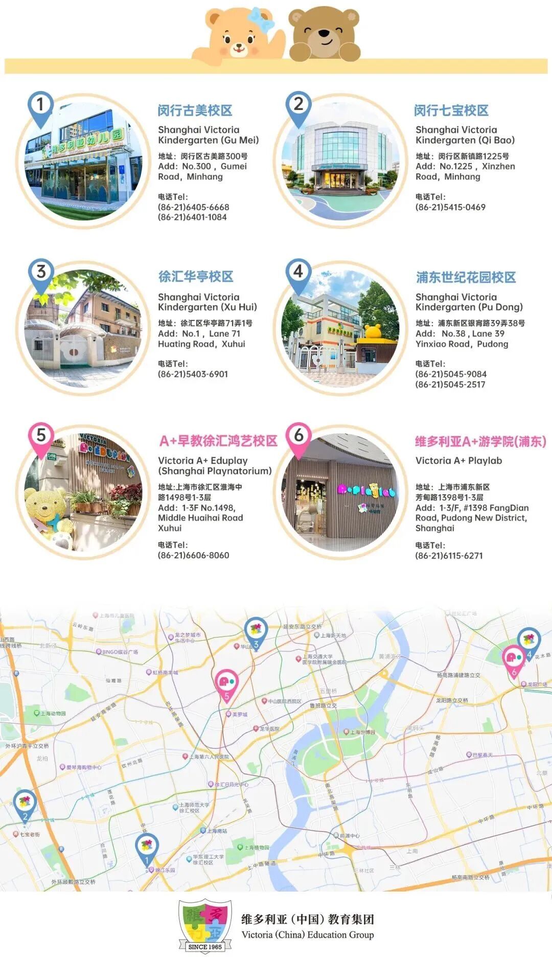 Our Campus: Victoria Gumei campus boasts a beautiful environment and well-equipped facilities, with a total floor area of approximately 3,200 square meters across two floors. This includes over 2,000 square meters of indoor activity space and 1,200 square meters of outdoor play area. The campus features seven dedicated activity rooms—a maker space, art room, library, construction room, multi-function room, and two role-play rooms—along with multiple open reading zones.