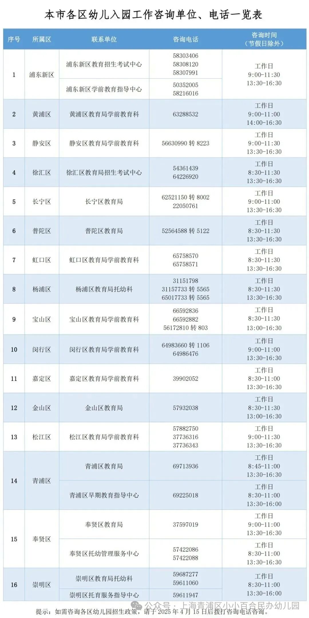 可通过“上海发布”“上海教育”以及各区、各街镇、各幼儿园、各区早教指导服务机构等官方微信公众号、网站等方式查询今年的入园工作相关具体信息,了解办理方式、办理时间、招生范围和报名条件等。