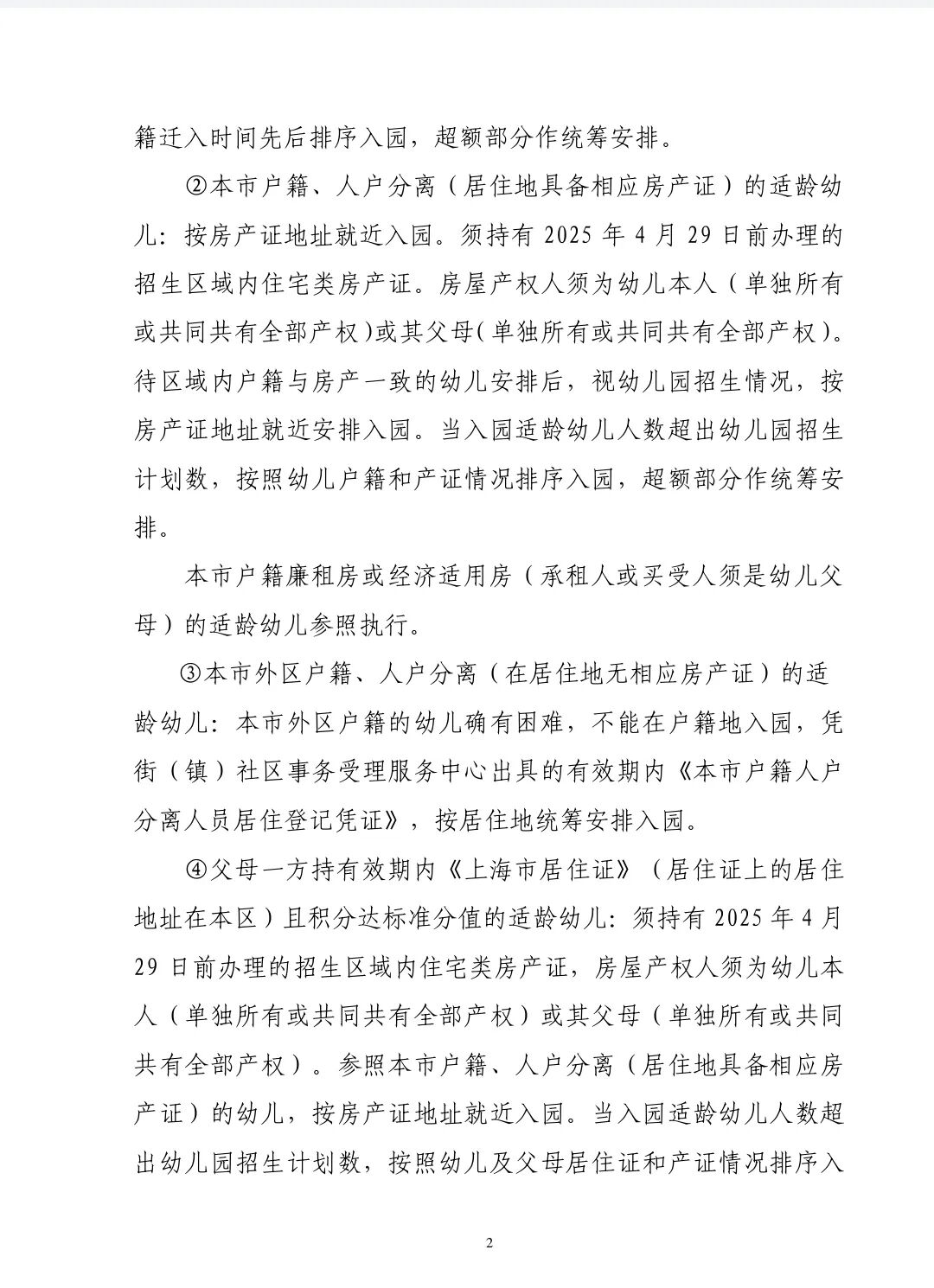 持有2020年4月30日前办理的招生区域内住宅类房产证的(产权人须为幼儿父母或其本人,并全部或共同共有产权),参照本市户籍、人户分离的幼儿,按房产证地址就近安排入园。无房产证的,凭本区合法居住证明,根据实际居住地址,统筹安排入园。