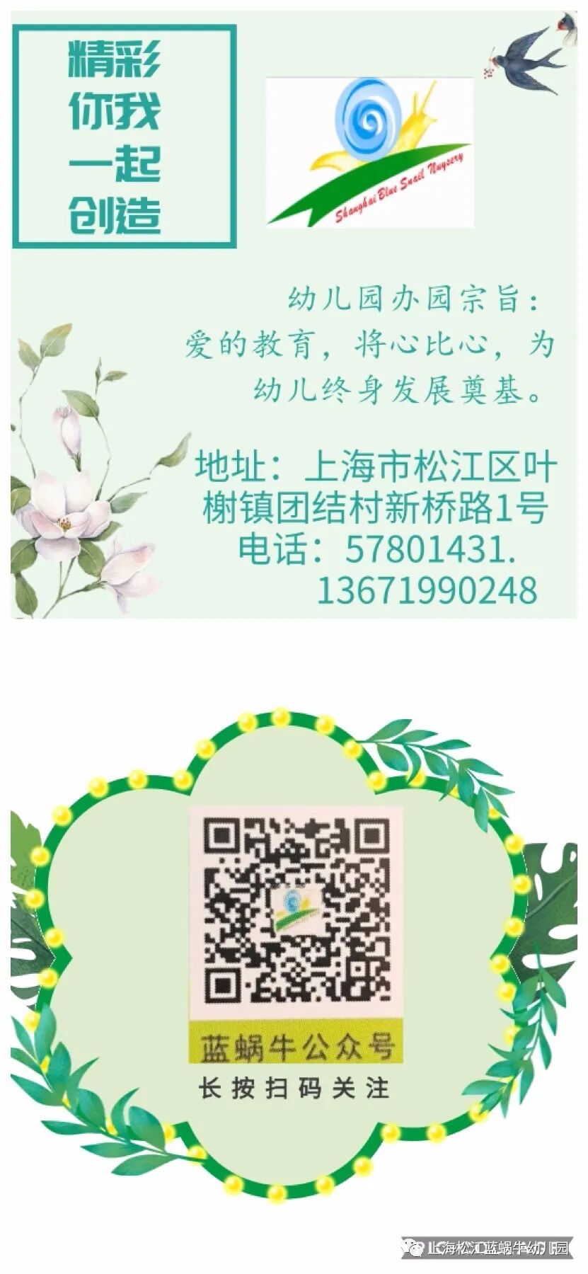 以上内容来源于“上海松江蓝蜗牛幼儿园”公众号