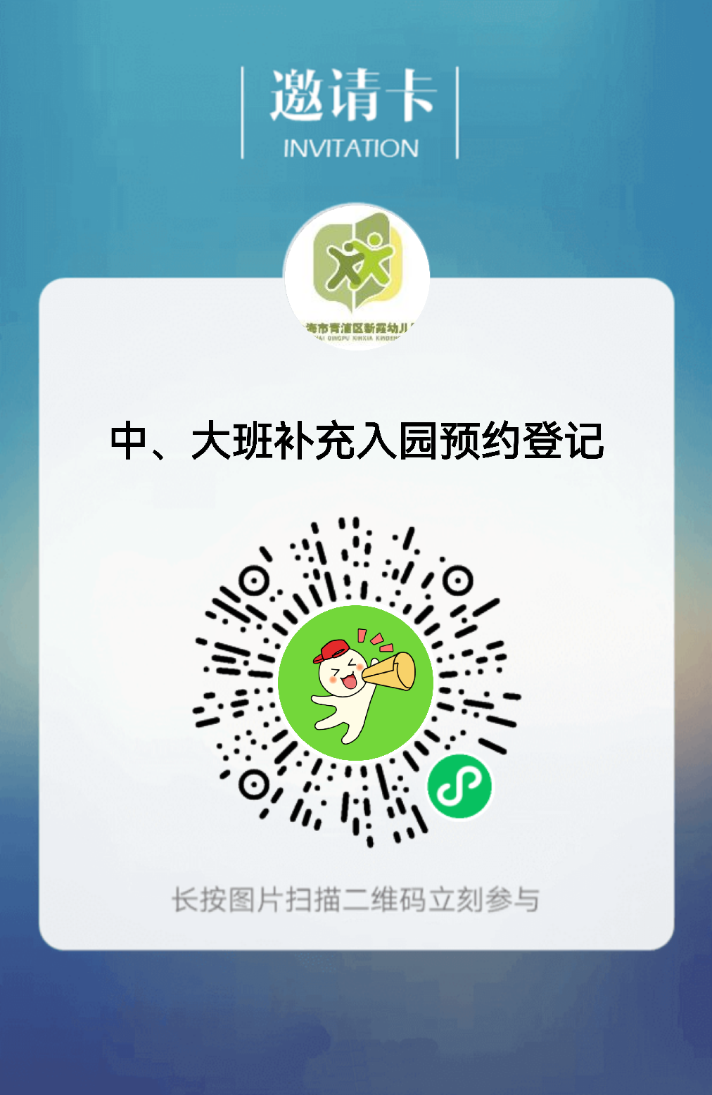请中、大班补充入园幼儿家长扫描以下二维码预约登记