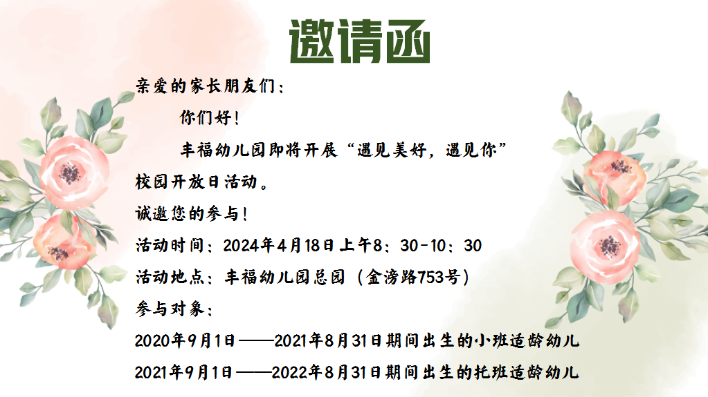 春暖花开,美好如约而至!丰福幼儿园诚邀您参加2025年校园开放日活动,走进我们的童趣世界,感受温暖有爱的成长氛围,期待与您在这方童真天地,共同见证成长的每一个美好瞬间。