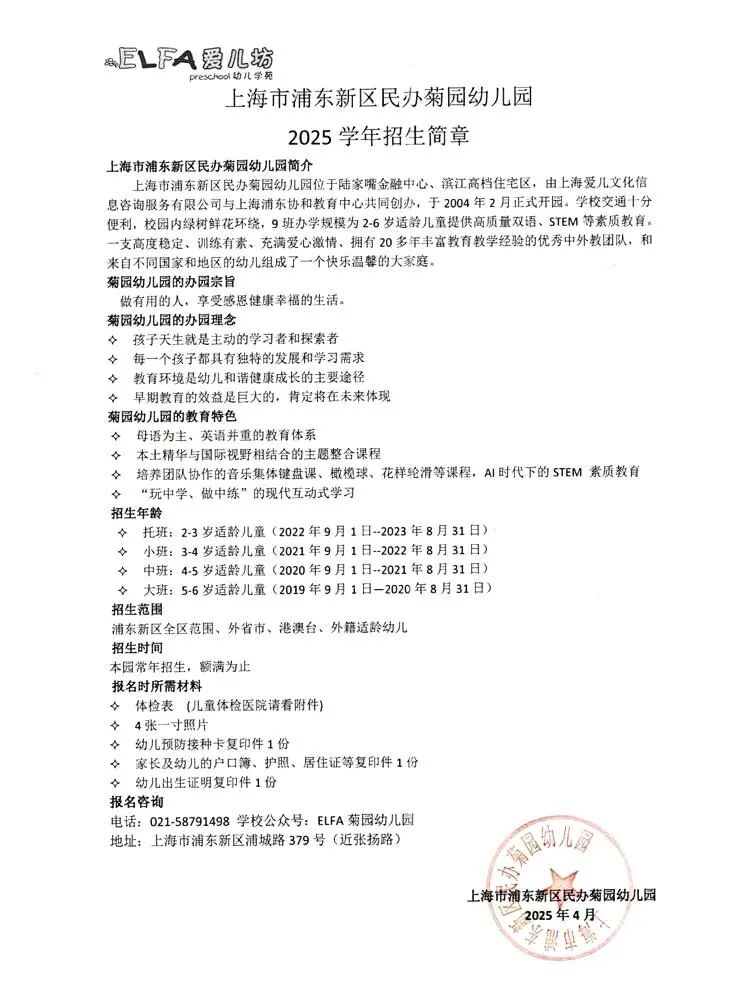 ELFA菊园幼儿园等你来!