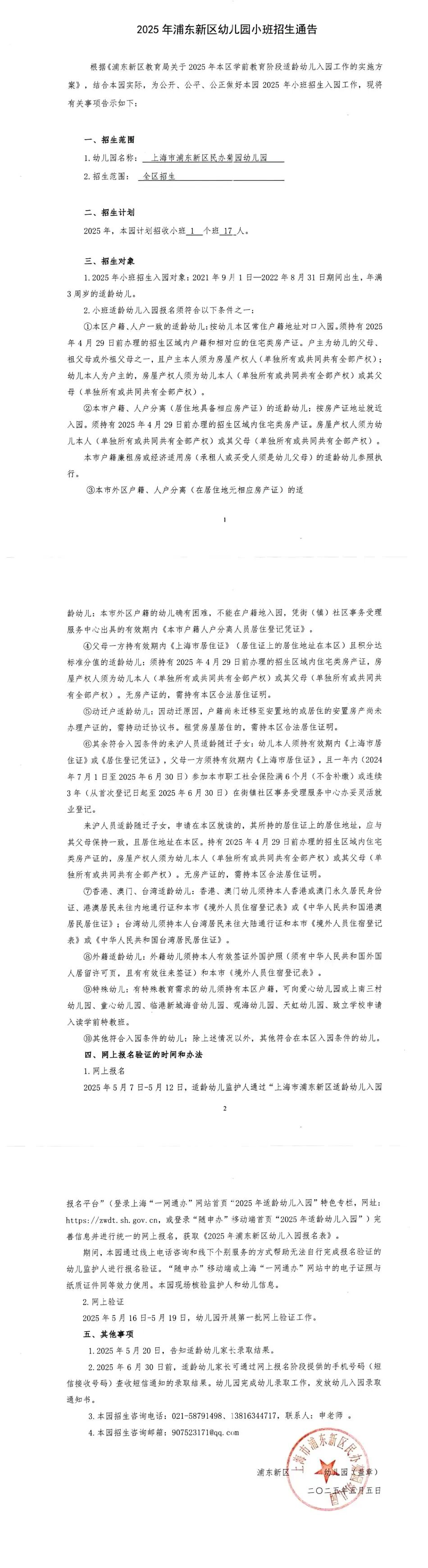 2015年9月1日-2016年8月31日出生幼儿。(少量名额)