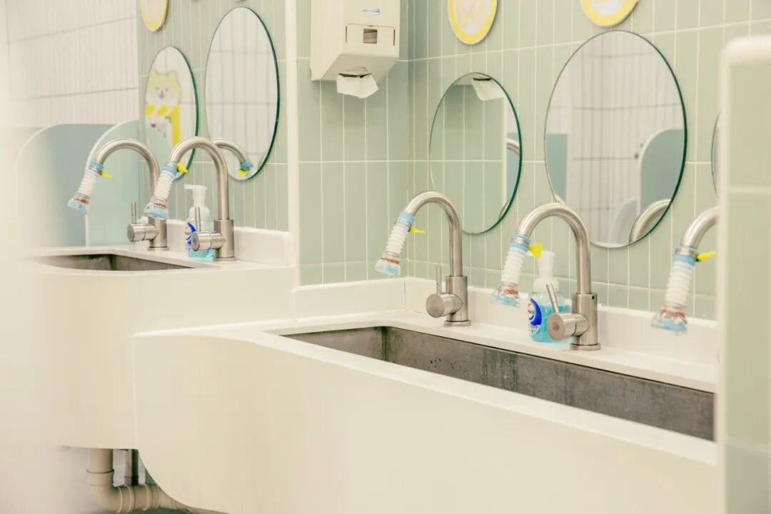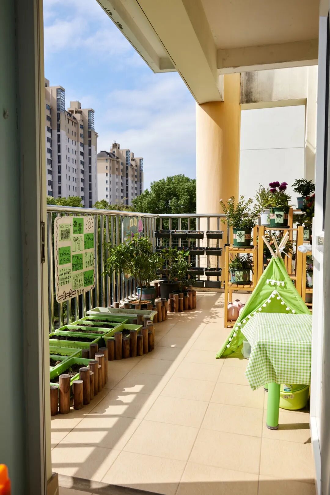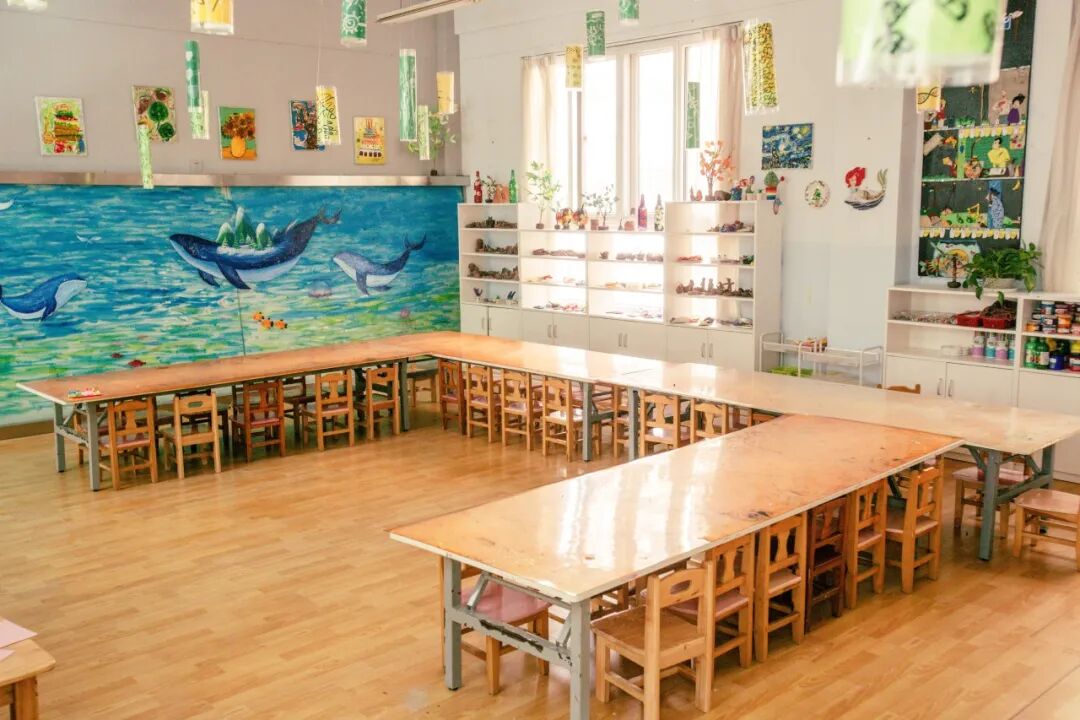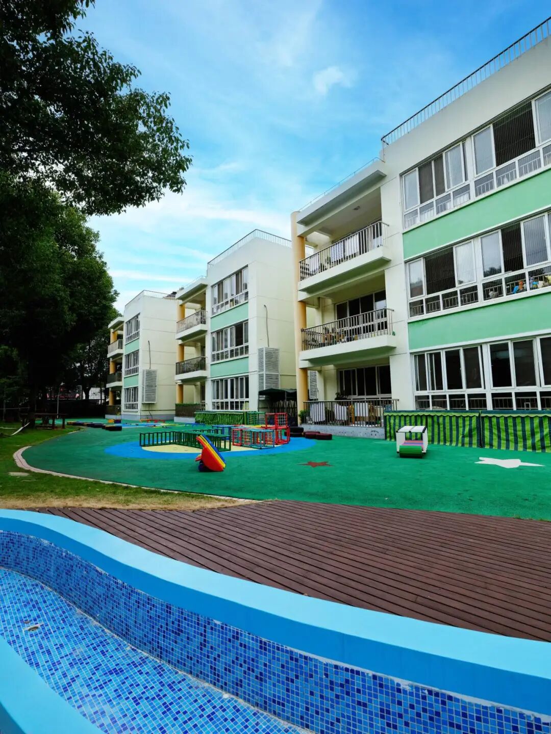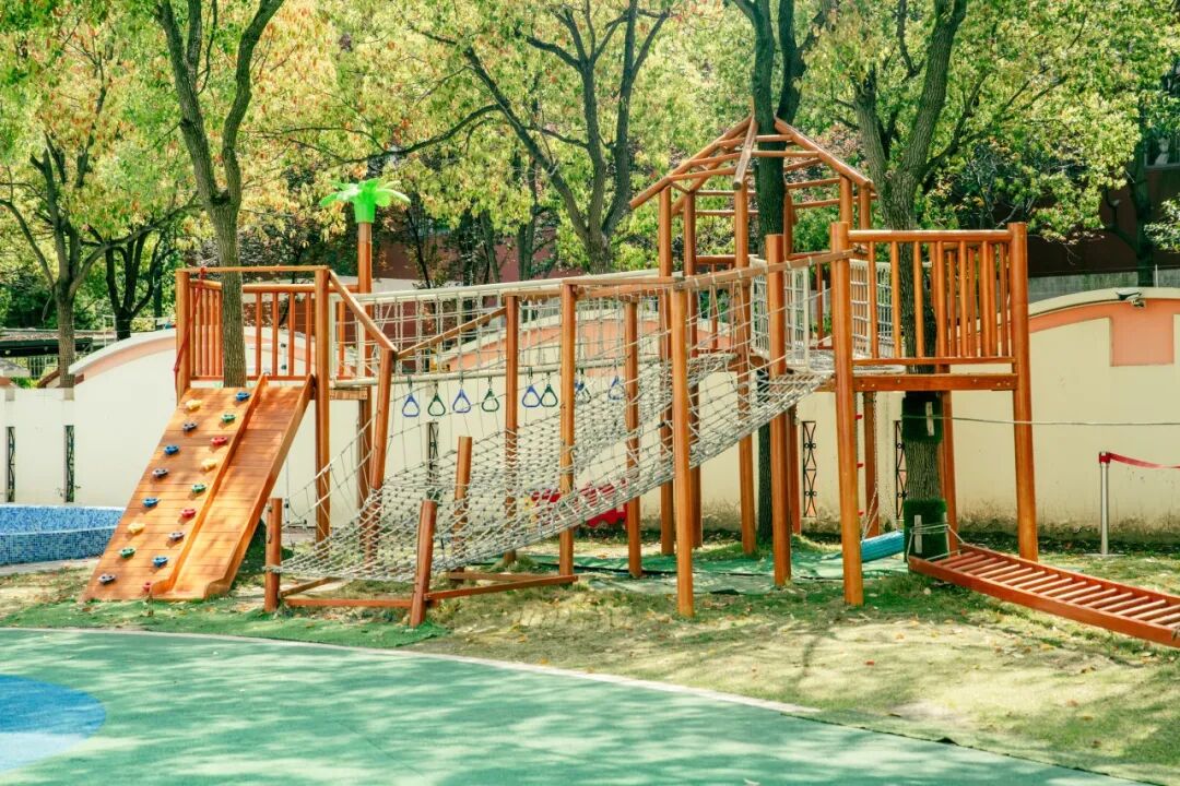 原木色的教室墙面、开放的沙水池、秘密花园般的种植区,打造零距离接触自然的健康空间;
