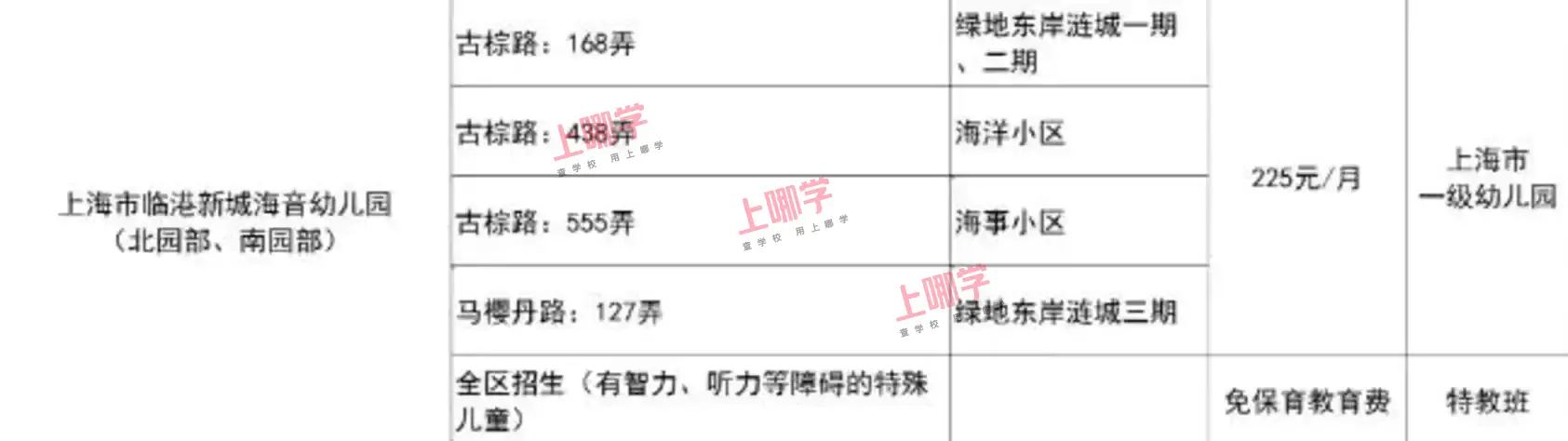 2.招生范围:古棕路555弄(海事小区)、古棕路438弄(海洋小区)、古棕路250弄(东岸连城)、古棕路168弄(绿地东岸涟城一期二期)、马樱丹路127弄(绿地东岸涟城三期)以及全区招生(有智力、听力等障碍的特殊儿童)