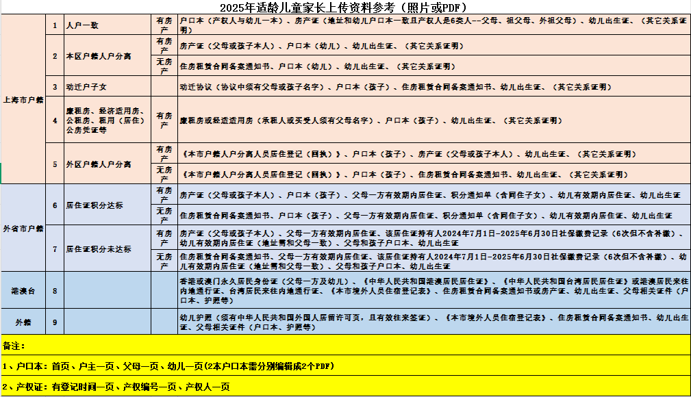 须持有2025年4月29日前办理的招生区域内住宅类房产证,房屋产权人须为幼儿本人(单独所有或共同共有全部产权)或其父母(单独所有或共同共有全部产权)。参照本市户籍、人户分离(居住地具备相应房产证)的幼儿,按房产证地址就近入园。当入园适龄幼儿人数超出幼儿园招生计划数,按照幼儿及父母居住证和产证情况排序入园,超额部分作统筹安排。无房产证的,凭本区合法居住证明,统筹安排入园。