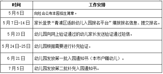 适龄幼儿家长须在5月8日-18日期间,通过“上海市适龄幼儿入园信息登记系统”中“各区报名”,登录“青浦区适龄幼儿入园报名平台”,完善报名信息,并自主选择公办或民办幼儿园提交报名(公、民办只可报名一类)。