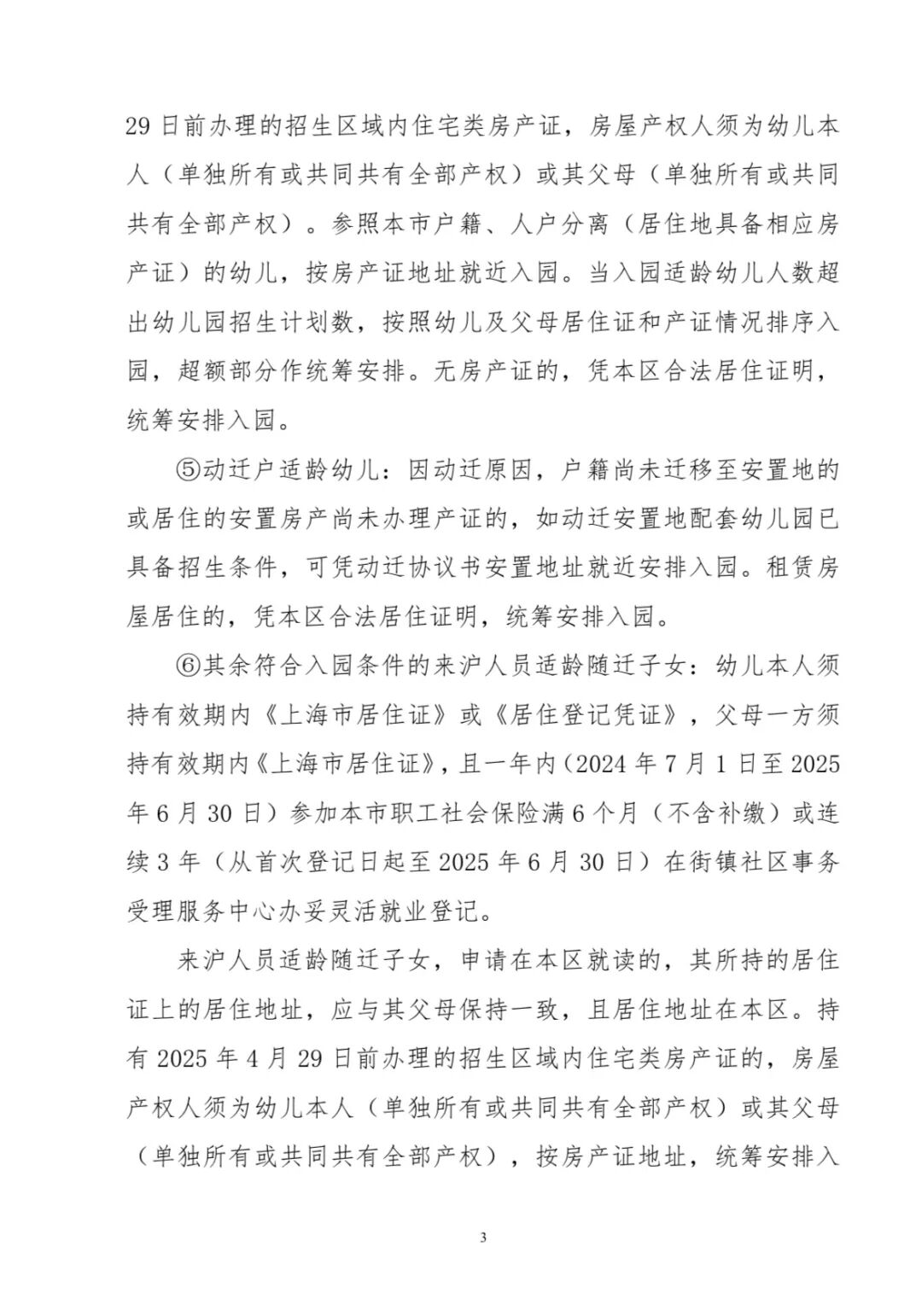 ⑥其余符合入园条件的来沪人员适龄随迁子女: