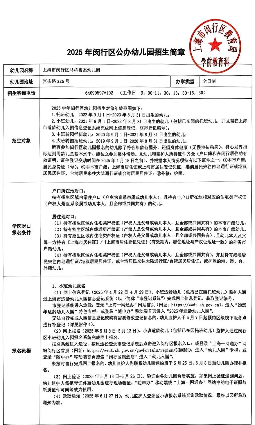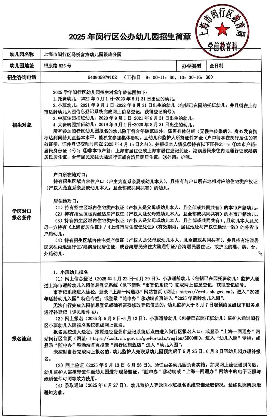 2.网上报名(2025年5月8日-5月12日)。小班适龄幼儿(包括已在园托班幼儿)监护人通过闵行区小班幼儿入园报名系统完成网上报名。报名系统进入途径:按原途径登录市登记系统后点击进入闵行区报名入口:或录“上海一网通办”网站闵行区首页(网址:https://zwdt.sh.gov.cn/govPortals/region/SH00MH),进入“幼儿入园”专栏:或登录“随申办”移动端首页搜索“闵行区旗舰店”进入“幼儿入园”。未按时自行完成网上报名的,幼儿监护人先联系幼儿园预约后于5月25日、6月8日至幼儿园办理补报名。