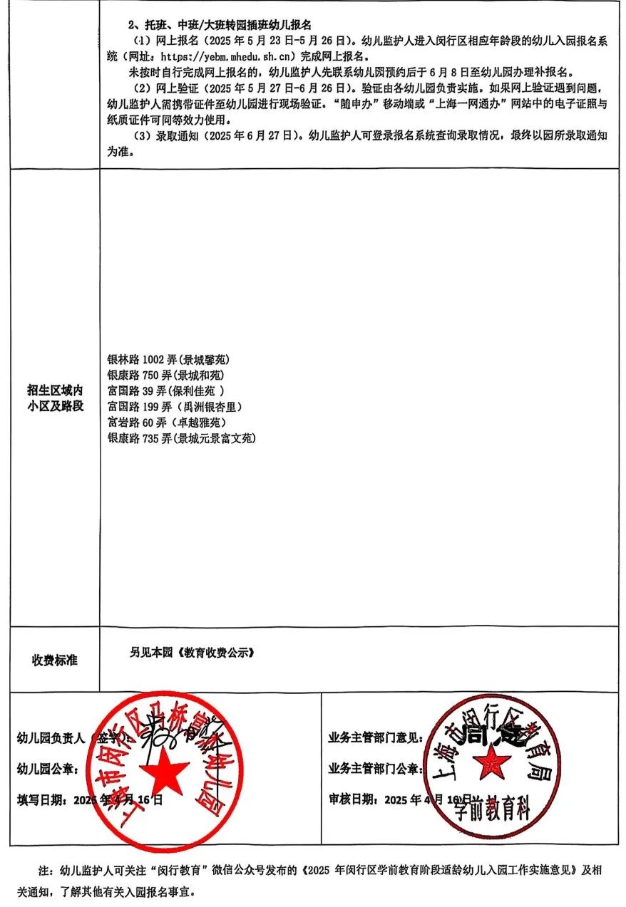 1.网上报名(2025年5月23日-5月26日)。幼儿监护人进入闵行区相应年龄段的幼儿入园报名系统(网址:https://yebm.mhedu.sh.cn)完成网上报名米按时自行完成网上报名的,幼儿监护人先联系幼儿园预约后于6月8日至幼儿园办理补报名。