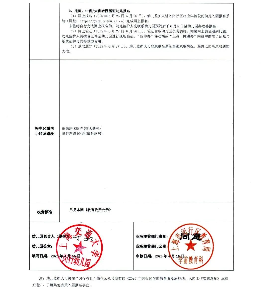 2025年5月23日—5月26日,幼儿监护人进入闵行区相应年龄段的幼儿入园报名系统(网址:https://yebm.mhedu.sh.cn)完成网上报名。