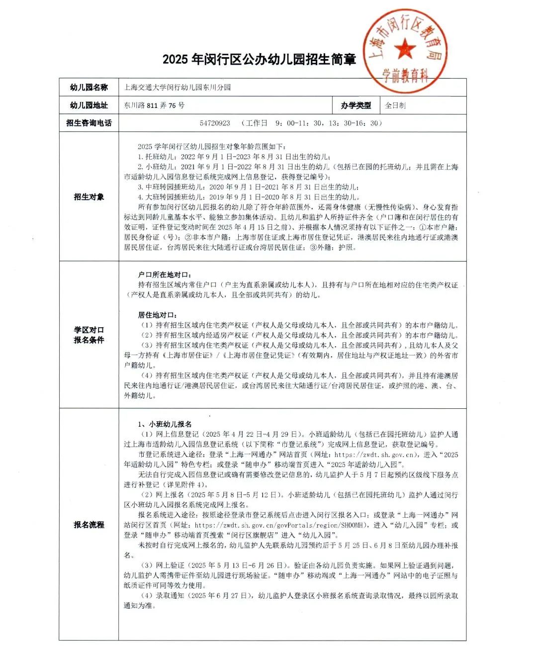 所有参加闵行区幼儿园报名的幼儿除了符合年龄范围外,还需身体健康(无慢性传染病)、身心发育指标达到同龄儿童基本水平、能独立参加集体活动。且幼儿和监护人所持证件齐全(户口簿和在闵行居住的有效证明,证件登记变动时间在2025年4月15日之前)、并根据本人情况须持有以下证件之一: