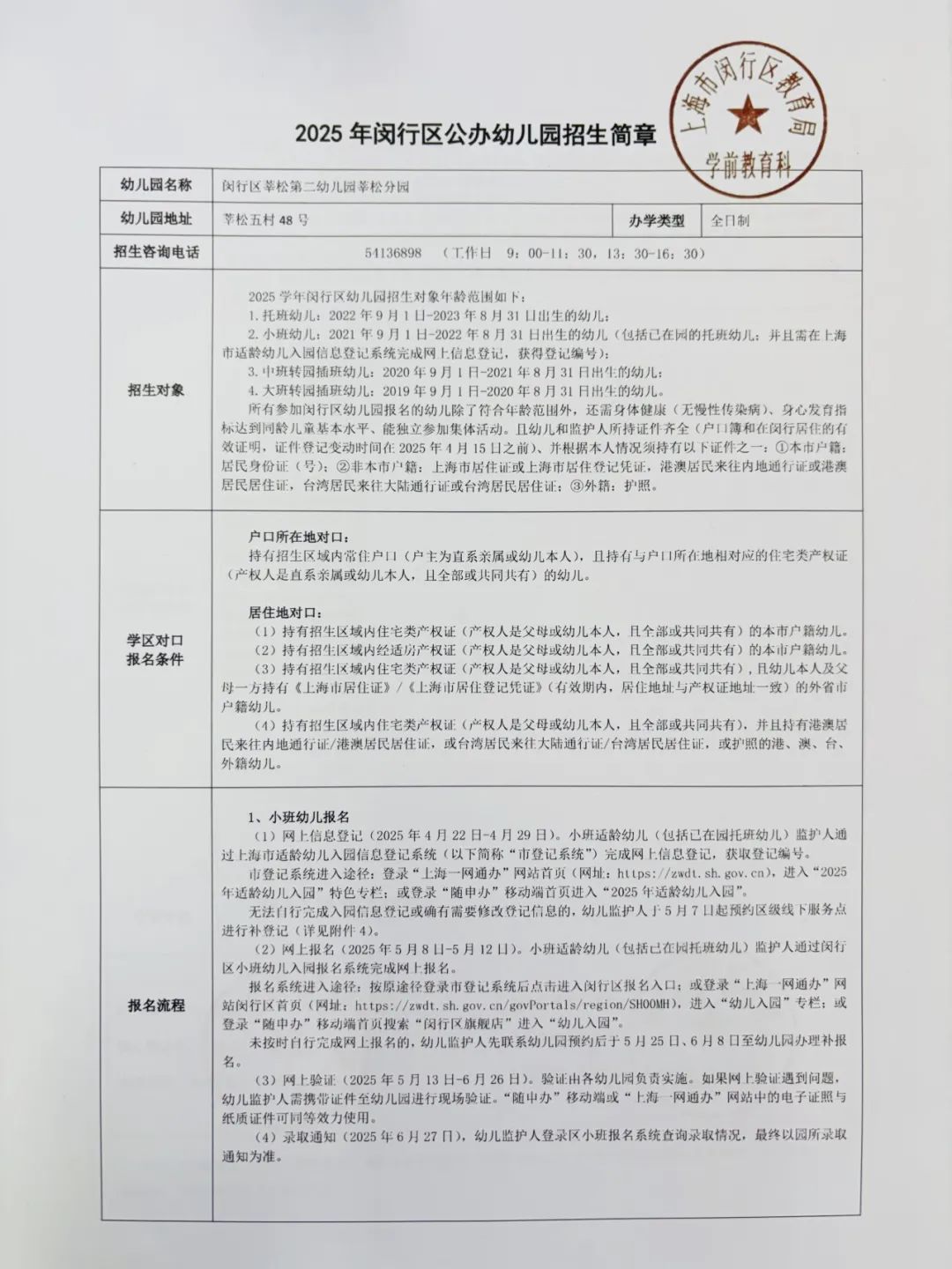 家长们可以关注“闵行教育”微信公众号发布的《2025年闵行区学前教育阶段适龄幼儿入园工作实施意见》及相关通知,了解更多入园报名事宜。