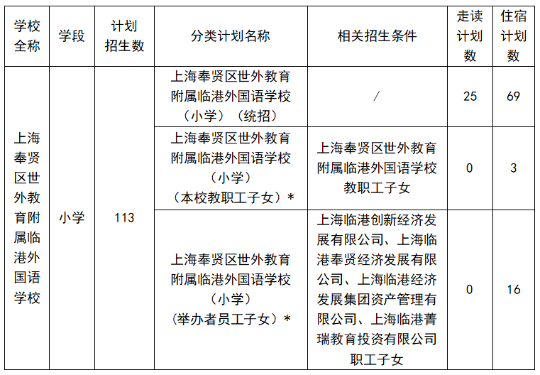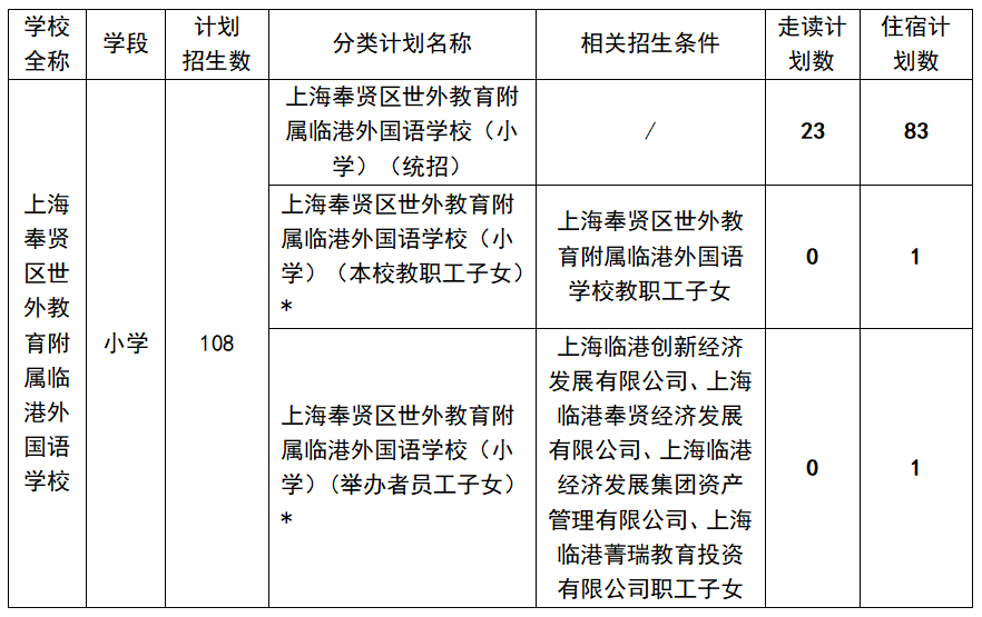 上海奉贤区世外教育 附属临港外国语学校 - 2022年招生简章 - 一、办学情况 上海奉贤区世外教育附属临港外国语学校是一所九年一贯制的全寄宿制学校。2020年9月起,由上海世外教育集团委托管理,开启了临港世外学校崭新的一页。学校位于上海自贸区临港新片区核心地段,硬件设施齐全,校园环境优美,是一所为临港地区提供世外教育品质服务的全寄宿制学校。学校周边高端制造业和生物制药企业集群,产业基础厚重,各方面资源充足,蓝湾社区配套完善,区域优势十分明显。 上海世外教育附属临港外国语学校是世外教育集团旗下唯一一所九年一贯制的全寄宿制学校,注重对学生良好生活、行为、学习习惯的培养,组织丰富多彩的校园文化活动,开展差异化的教学与辅导,帮助家长解决因工作忙碌而无暇照顾孩子学习生活的后顾之忧。学生在校期间,从生活料理到学业辅导、到兴趣特长发展,学校都配备齐全,提供一站式服务。 学校充分利用世外教育集团课程资源平台精心设计WFL“睿贤”七彩课程,基础型课程扎实学生学业基础,彰显世外英语见长和国际视野;拓展型课程和丰富的综合主题活动,满足学生兴趣发展,多元发展;探究型课程为学生开展主题式探究、跨学科探究提供平台,培养学生未来领导力、胜任力。 学生天天社团,周周探究、人人参与,满足学生个性特长的多元发展,丰富的校园文化活动,培养学生自信心和必备品格,深受学生、家长的欢迎。 学校的管理团队均有世外教育集团委派,由一名总校长、两名副校长、两位学部主任组成的管理团队,拥有20至30多年的教育教学经历,10至20多年校级岗位管理经历,管理经验丰富,对教育充满情怀。学校教师队伍的构成主要由徐汇世外学校外派骨干教师和管理人员、融合学校原有优秀教师以及由世外集团招聘教师三方面构成,教师平均年龄34.8周岁,高级教师5名,所有教师都要经过世外教育集团统一集中轮训。管理团队及部分教师住宿学校,为寄宿学校管理提供有力支撑。 二、招生计划 三、招生对象 符合上海市入学条件的年满6周岁(2015年9月1日-2016年8月31日出生)儿童和五年级应届毕业生。 四、收费标准 学费标准:小学每学期40000元;初中每学期50000元。 住宿费标准:小学每学期2000元;初中每学期2000元。 五、奖学金制度 学校设立学生高额奖学金制度,年级5%的学生获“睿慧之星奖”,初中奖励每学期1万元,小学奖励每学期5000元;年级30%的学生获“学习之星奖”,初中奖励每学期5000元,小学每学期1000—3000元不等。(奖学金认定标准依据学校相关规定,如遇不可抗力因素无法核定,奖学金可转为其他活动费用,最终解释权归学校)。 六、报名方式及时间 学校实行网上报名。 小学:报名就读本校的学生须在6月22日-6月24日登陆“上海市义务教育入学报名系统”(shrxbm.edu.sh.gov.cn)网站,进入民办中小学报名页面,完成报名。 初中:报名就读本校的学生须在6月27日-6月29日登陆“上海市义务教育入学报名系统”(shrxbm.edu.sh.gov.cn)网站,进入民办中小学报名页面,完成报名。 每位学生填报1所民办学校参加电脑随机录取,并可填报1个民办学校调剂志愿。 七、录取方式 如报名人数少于或等于招生计划,全部录取;如报名人数超过招生计划,招生计划全部由区教育局组织实施电脑随机录取。电脑随机录取时间为7月4日—7月5日。 八、招生纪律和承诺 学校将成立招生领导小组,本着公平、公正、公开原则,全面规范招生工作。招生人员做到廉洁奉公,拒绝任何形式的礼品。学校招生工作接受群众监督及上级教育部门审核。 招生期间,学校严格遵守以下“三个承诺”: 1、不提前组织学生报名或变相报名; 2、不举行任何测试、测评、学科练习、面试或面谈; 3、招生录取不与任何培训机构挂钩。 郑重声明:义务教育阶段我校不引进境外课程,不使用境外教材。 学校实行小班化教学,教师可以高度关注每一位学生的成长,为每一位学生的健康成长奠定基础。 九、联系方式 1、学校地址: 上海奉贤区万水路6668号 2、邮 编:210413 3、招生咨询电话: 021-57540761 小学部:赵老师 13661877093 中学部:董老师 15869481002 4、学校官方电子邮箱: lgsw@wfl.sh.edu.cn 5、学校官方微信公众号:临港世外 上海奉贤区世外教育附属附属临港外国语学校 2022年5月29日