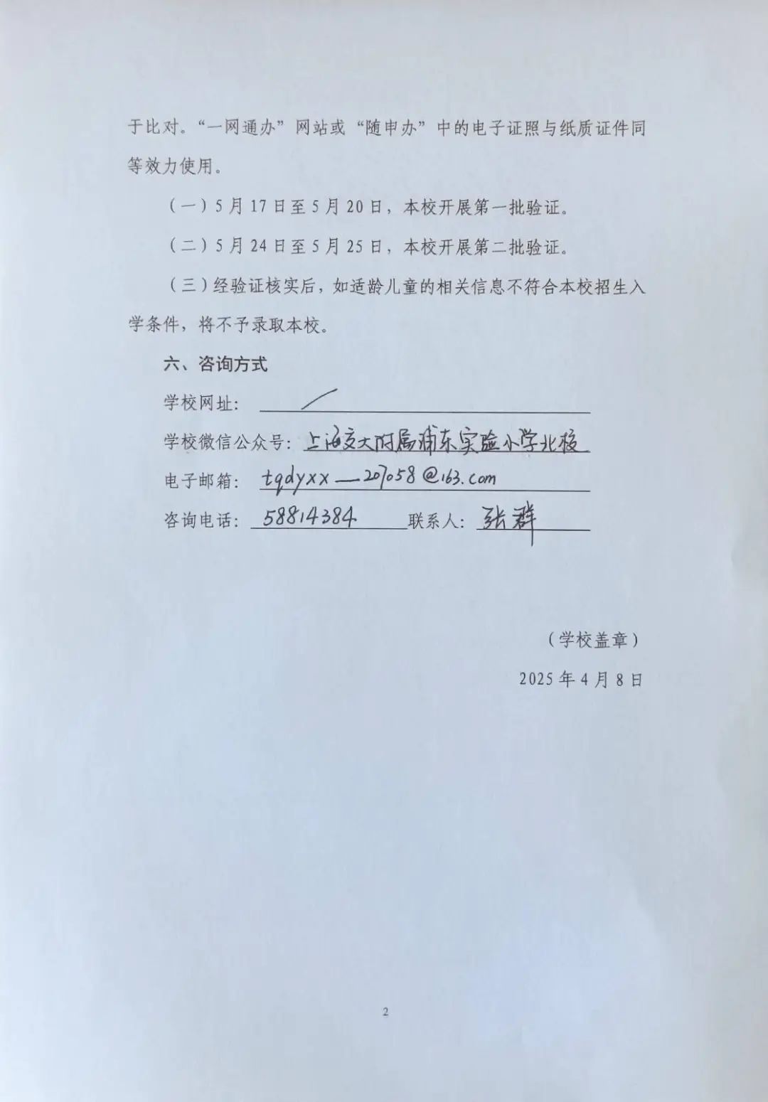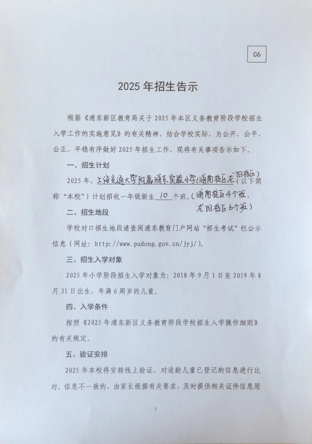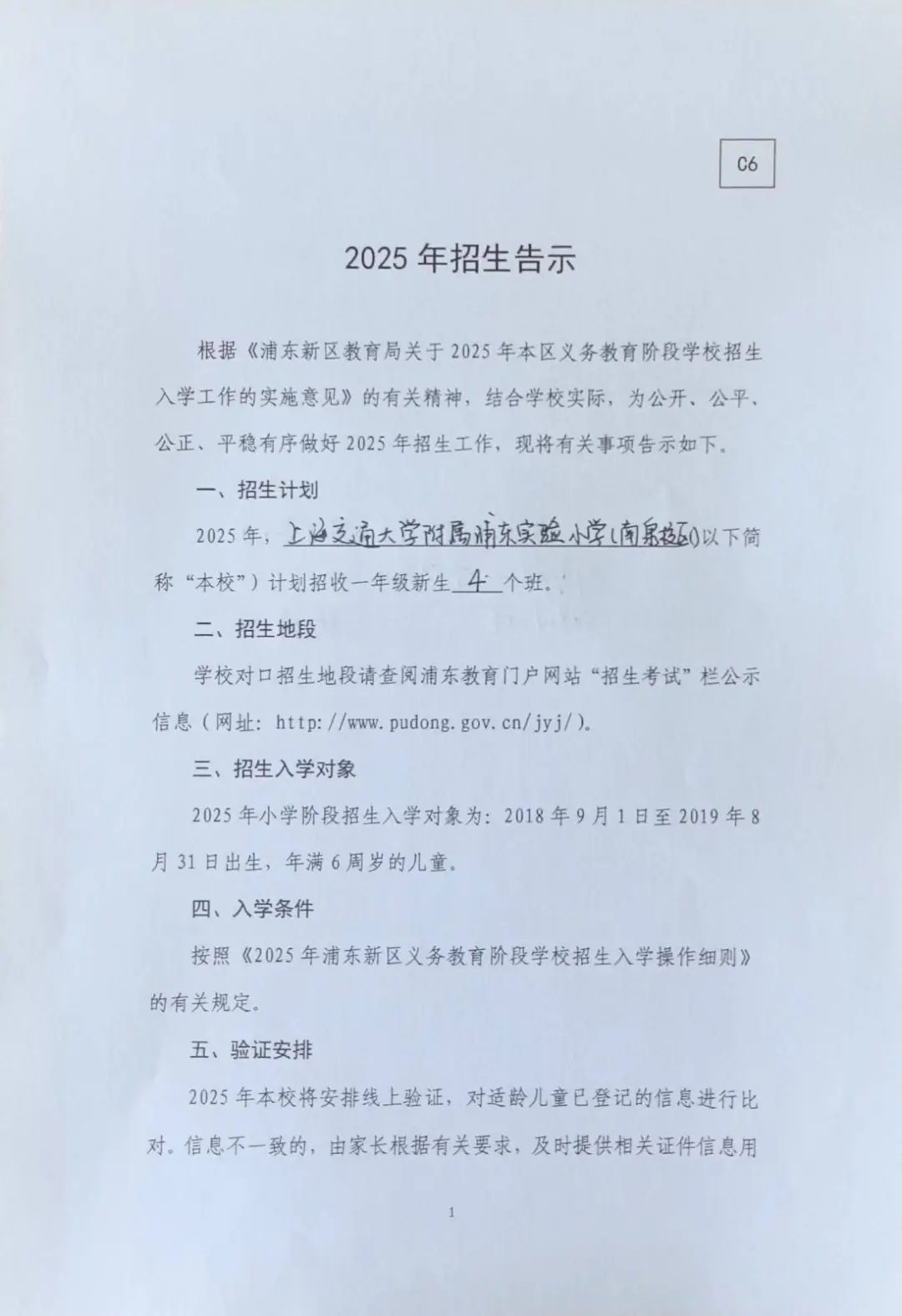 根据《浦东新区教育局关于2025年本区义务教育阶段学校招生入学工作的实施意见》的有关精神,结合学校实际,为公开、公平、公正、平稳有序做好2025年招生工作,现将有关事项告示如下。