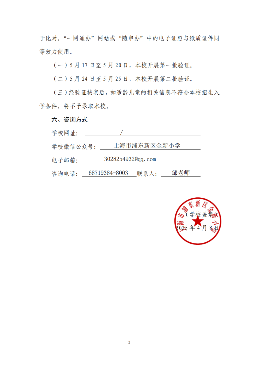(三)经验证核实后,如适龄儿童的相关信息不符合本校招生入学条件,将不予录取。