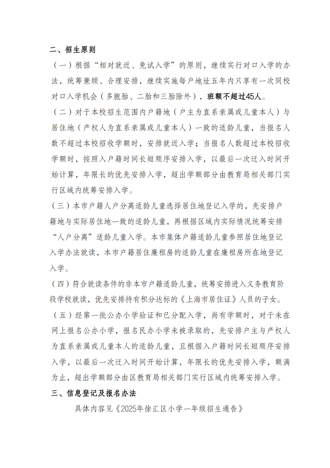 具体内容见《2020学年度徐汇区小学一年级招生通告》