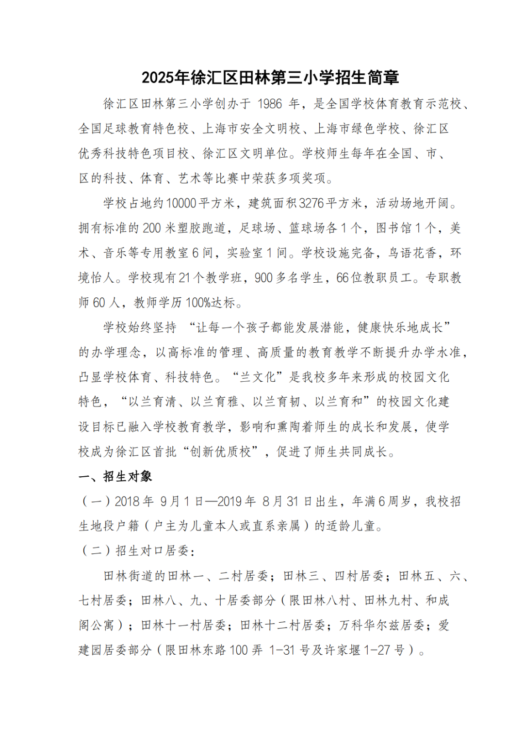 (二)招生对口居委:田林街道的田林十一村居委、田林十二村居委、万科华尔兹居委、爱建园居委部分(限田林东路100弄1-31号)