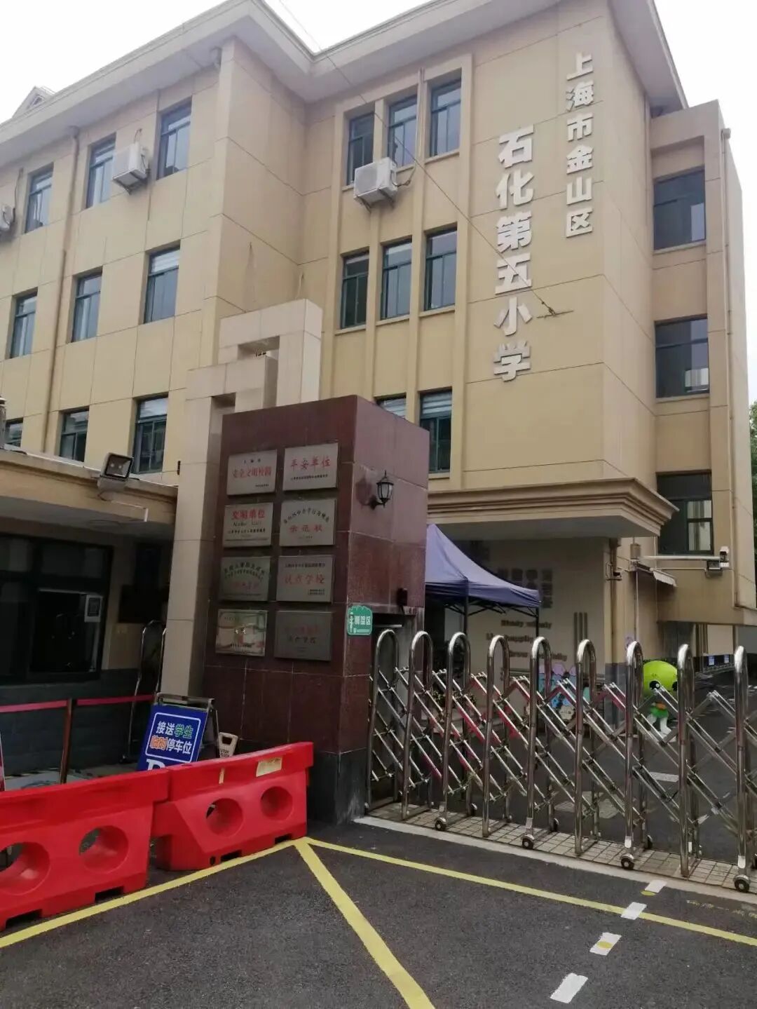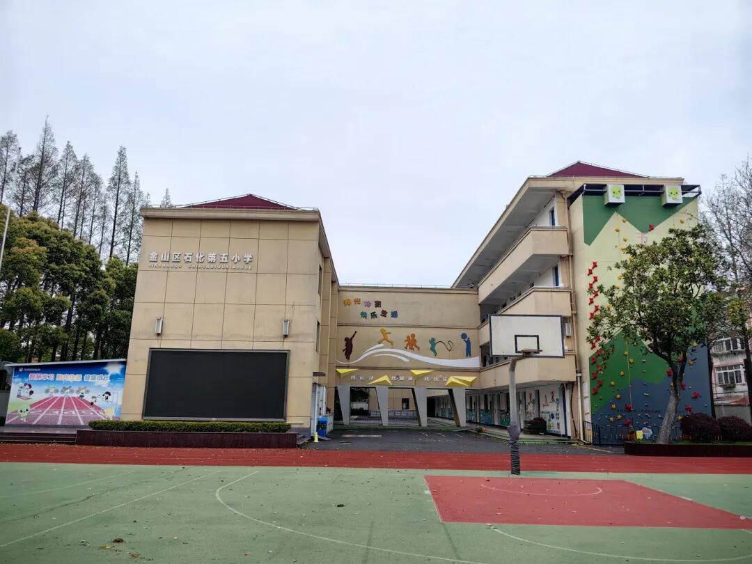 金山区石化第五小学,坐落在石化北区滨海二村,创办于1980年8月,是一所区四星级行为规范示范学校。学校创办时校名为上海石油化工总厂第五小学,1994年更名为上海市石化地区第五小学,1997年再次更名为金山区石化第五小学。学校占地面积约5747平方米,建筑面积约2983平方米。长期以来学校在上级行政部门的正确领导下全面贯彻党的教育方针,积极推进上海市二期课改,坚持“以人为本,德育引领、科研兴校”的办学宗旨,以“教育理念新、创新意识强、教师素质高、教学有质量”为目标,坚持走特色办学之路,办学成绩日益显著,1998年9月,学校大队部荣获上海市雏鹰大队;1999年4月、2001年4月、2005年4月、2007年4月分别被上海市金山区人民政府命名为“上海市金山区文明单位”。