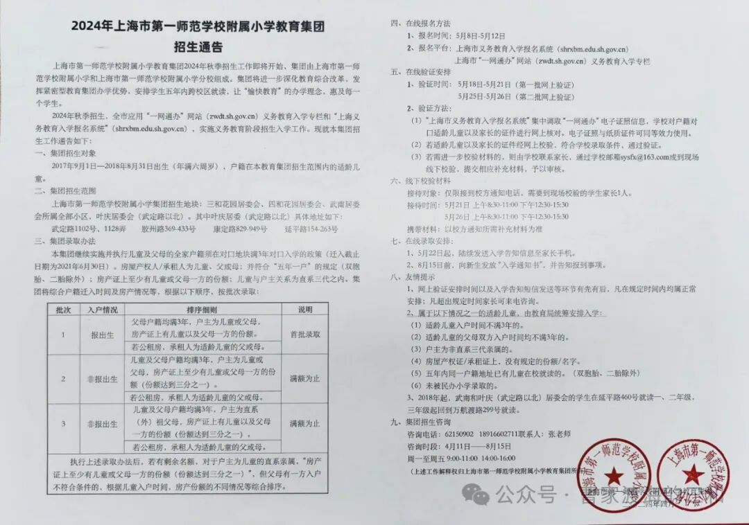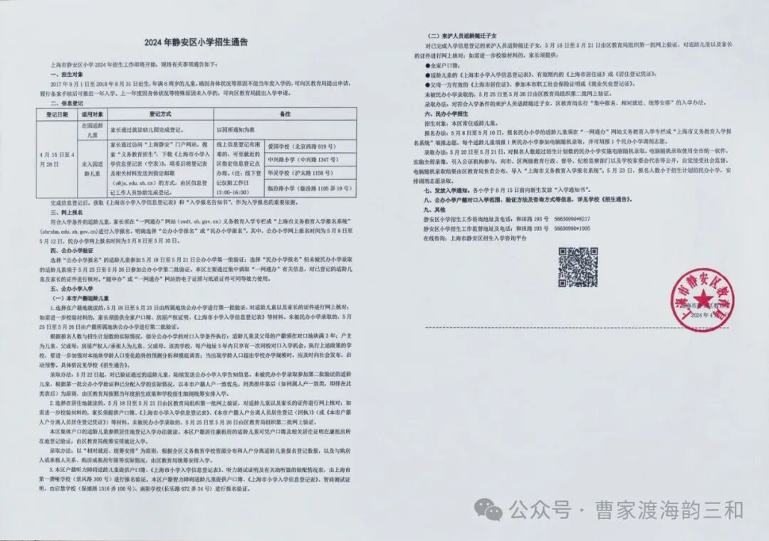 具体招生细则会在四月中旬下发到各居委,并在校门口及网上公示。