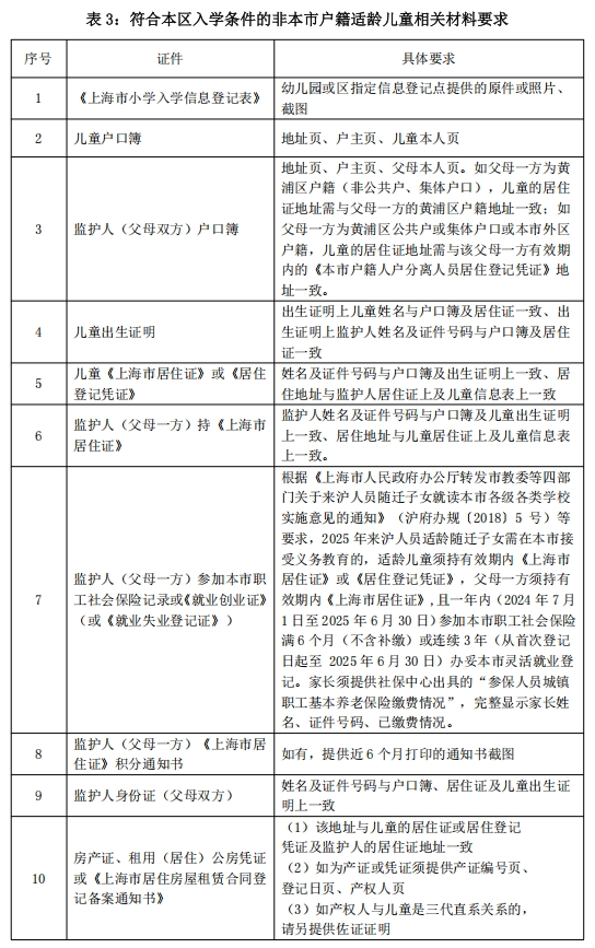 3 | 《本市户籍人户分离人员居住登记(回执)》或《本市户籍人户分离人员居住登记申请(回执)》 | 儿童本人(受理截止日为4月23日) | 原件及复印件 |