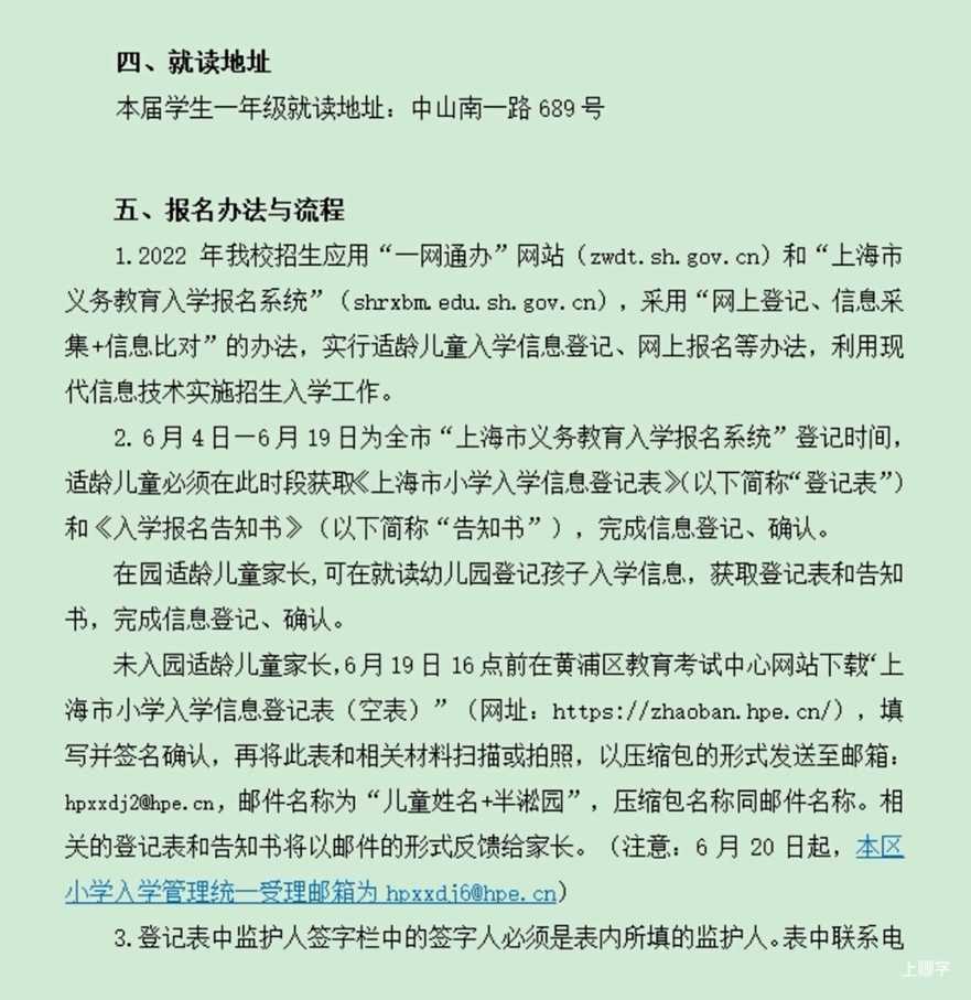 2.按市教委改革招生入学办法要求,继续使用“上海市义务教育入学报名系统”。坚持公开、公平、公正的原则,做好招生录取工作。