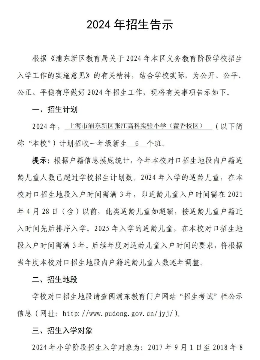 第二类对象:本市户籍“人户分离”适龄儿童以及符合入学条件的来沪人员适龄随迁子女(父母一方持有效期内《上海居住证》,且积分达标准分值),具备本校对口地段内相应房产证(产权人为适龄儿童父母或其本人,并全部或共同共有产权),产证上的登记日期截止为2020年4月23日。此类对象按产证上的登记日期先后排序入学,额满为止。超额部分由区招办统筹安排入学。