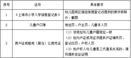 6 | 房产证、房卡或《上海市居住房屋租赁合同登记备案通知书》 | 儿童本人或直系亲属 | 原件及复印件 |