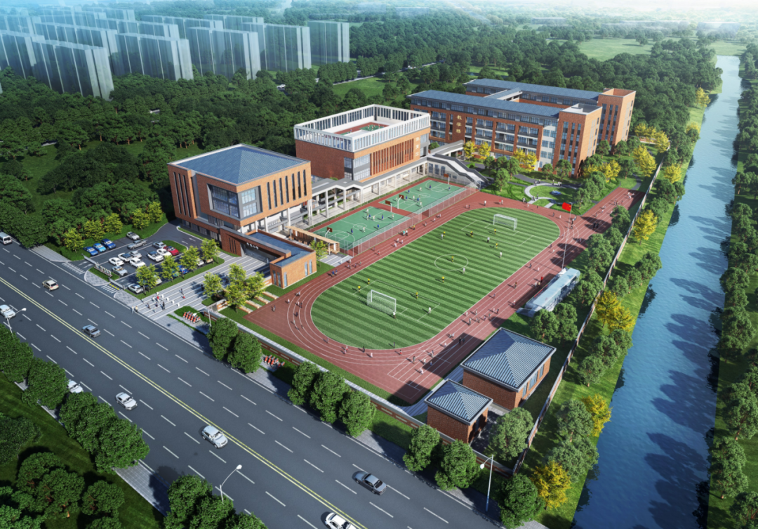 学校总建筑面积为17768.96平方米,其中地上建筑面积14118.96平方米,地下建筑面积3650平方米。设计理念先进,教学楼、图书馆、体育馆、篮球场、200米环形跑道、100米直跑道、屋顶排球场、餐厅、多功能厅、地下车库等一应俱全,布局合理,相得益彰,营造出独特新颖的建筑形象与学习氛围。办学规模为20个教学班,计划于2025年2月竣工。2024年计划招收一年级4个班,暂借于东华大学附属实验学校松江小昆山分校(中德路1151号)。