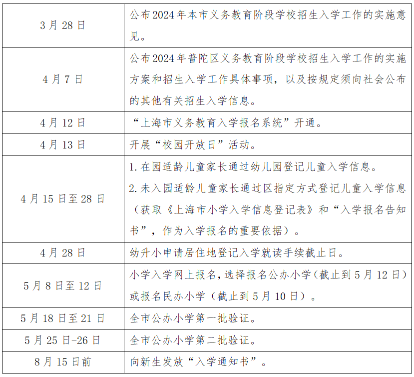 4月12日 | “上海市义务教育入学报名系统” (shrxbm.edu.sh.gov.cn)开通。 |