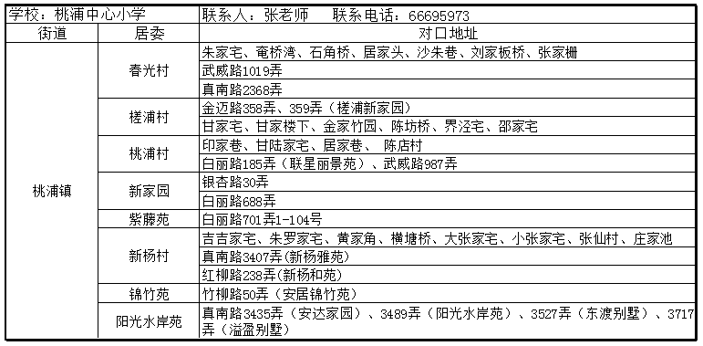 | 桃浦镇 | 春光里委 | 朱家宅、奄桥湾、石角桥、居家头、沙朱巷、刘家板桥、张家栅 |