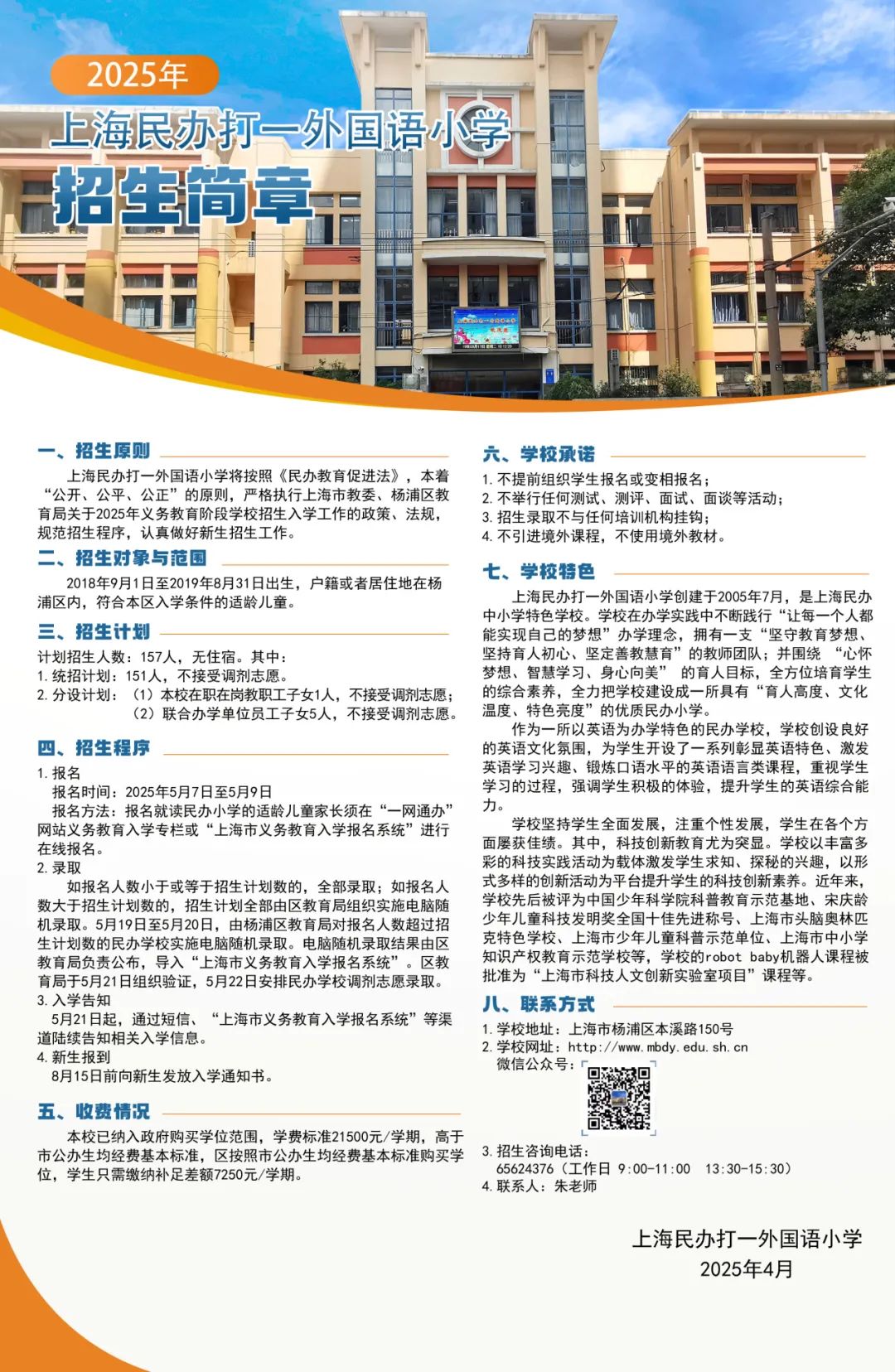 2023年上海民办打一外国语小学招生简章2023-04-07