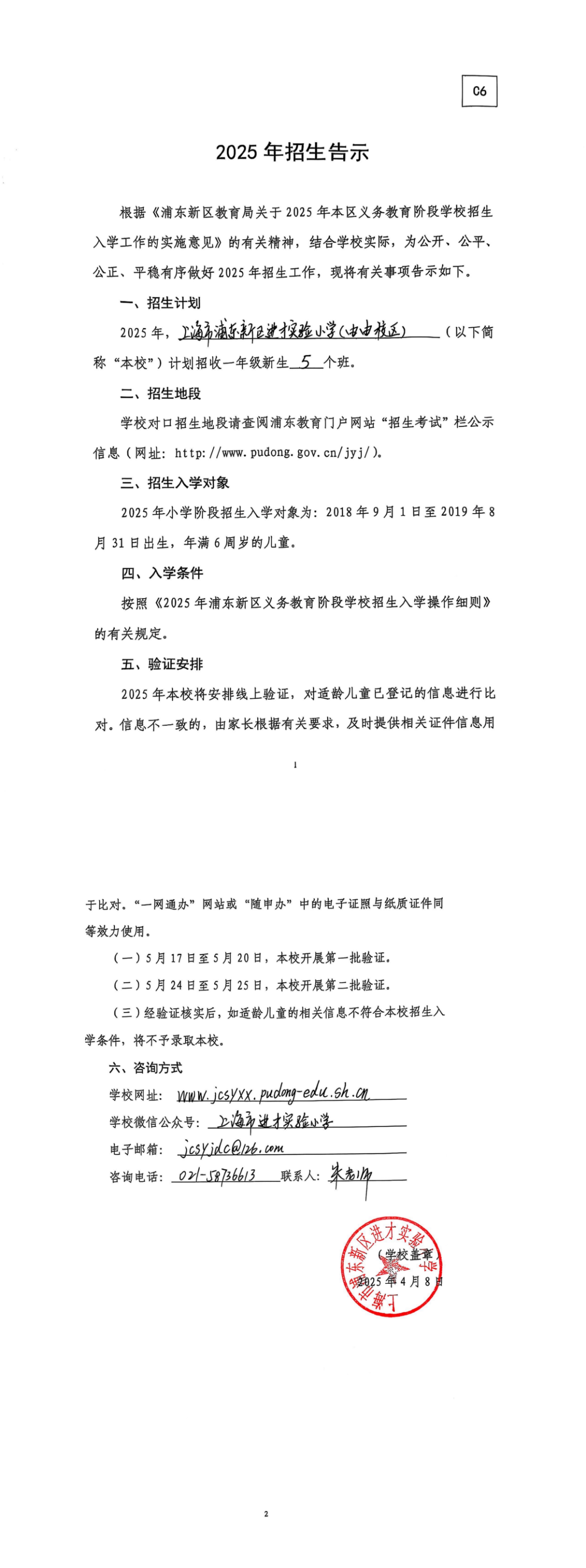| 1 | 4980 | 进才实验小学[由由校区] | 花木街道 | 杨高南路468号 | ||