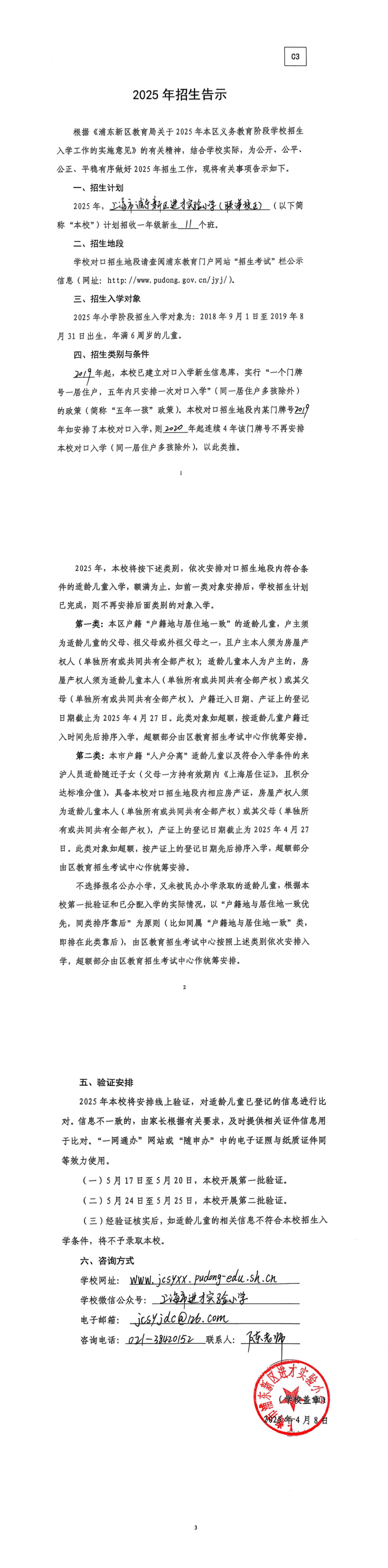 四:招生时间:各区政策公布:3月;入学信息登记:4月8日-23日;网上报名:4月26日-4月30日;网上验证及入学告知:5月15日-5月29日;入学通知书发放:8月15日前