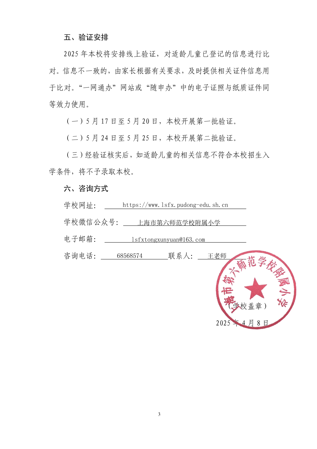 (三)经验证核实后,如适龄儿童的相关信息不符合本校招生入学条件,将不予录取本校。