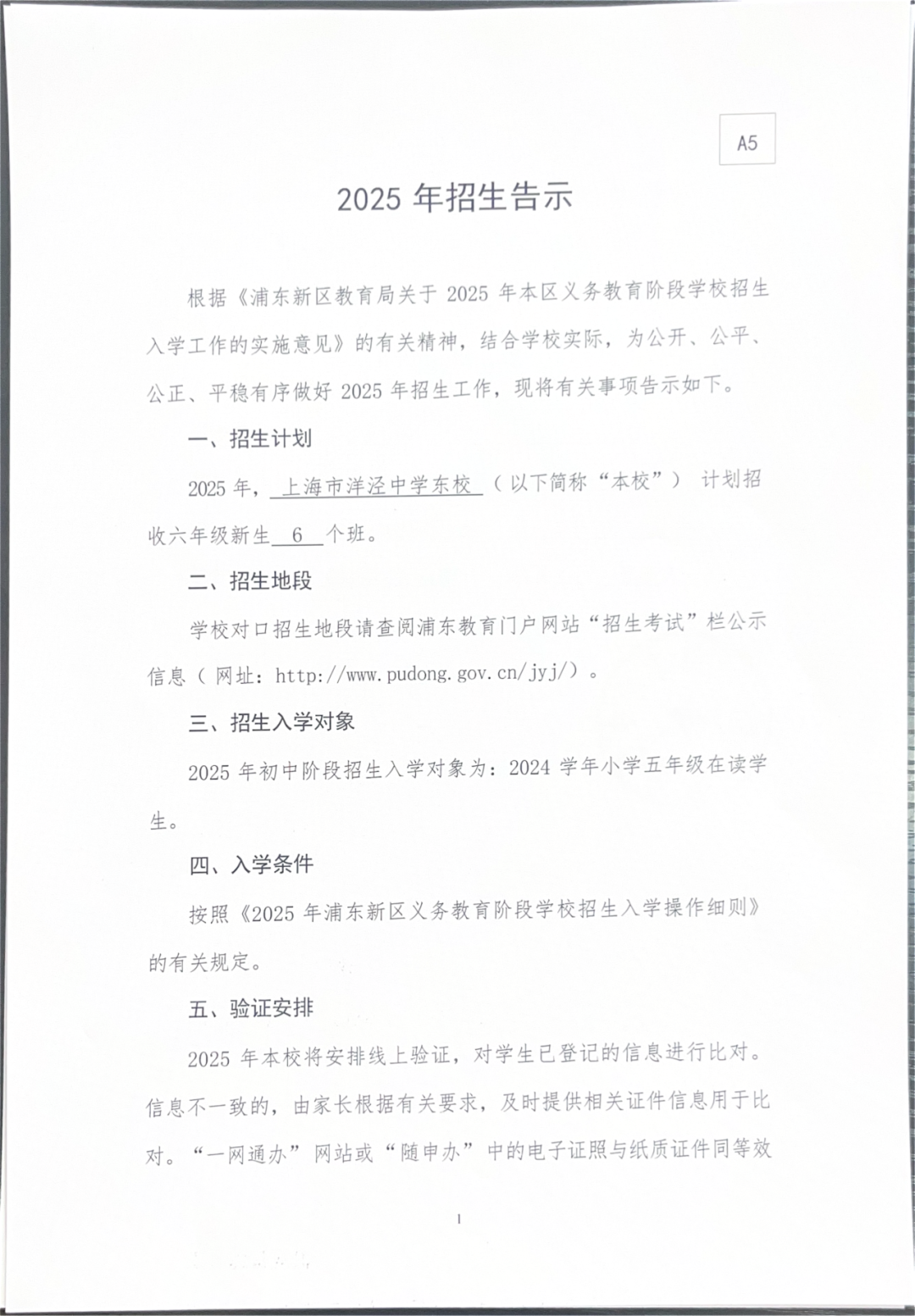 一、招生对象:符合上海义务教育条件的五年级小学毕业生;