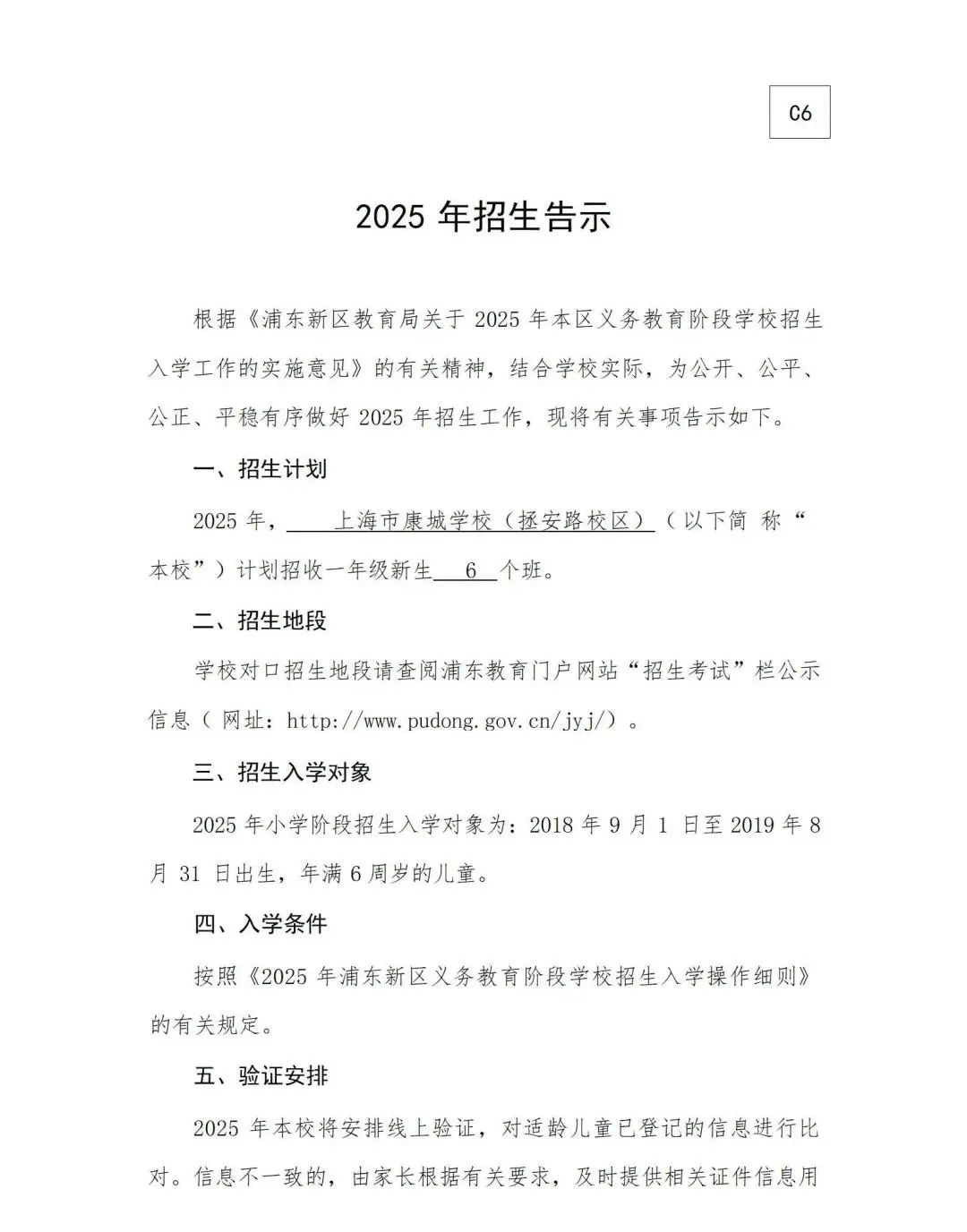 | 6 | 5800 | 康城学校 | 康桥镇 | 川周公路2928弄 | 康庭苑 | |