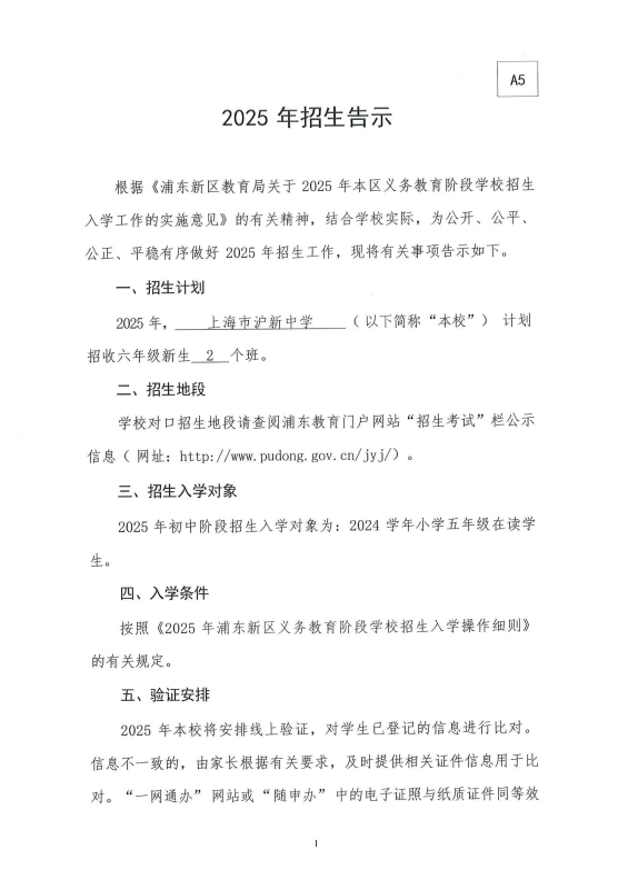 一、招生对象:符合上海义务教育条件的五年级小学毕业生;