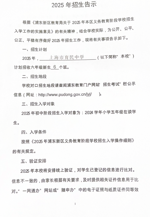 上海市育民中学(初中部)