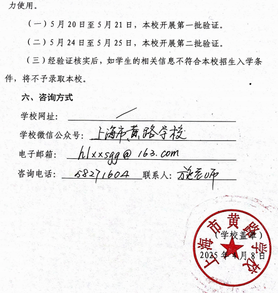备注:根据浦东新区教育局招生工作规定:原黄路学校五年级学生原则上直接升入本校初中部。另,我校无论小学一年级还是预备年级均衡分班;不举行任何形式的测试、面试等;不收取任何学生的简历等材料;招生录取不与任何教育培训机构挂钩,并接受社会监督。
