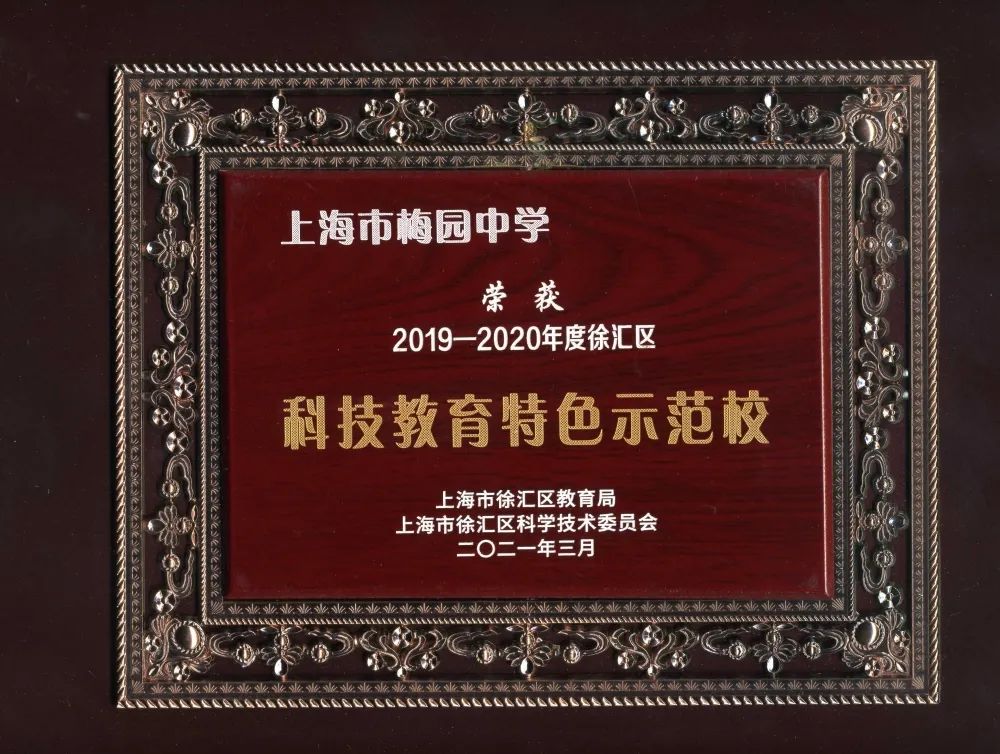 科技方面,学校作为全国和上海市航空特色学校,在以航空为载体的科技特色教育方面成效显著。学校设有以飞行原理为核心的模拟飞行课程、以编程为核心的飞行物联课程、以及与航空相关的航空静态模型制作、无人机飞行、航空科创画等系列课程,组成了多维度的浸润式课程学习,为学生提高团队合作、方向感等综合素质能力,激发学生对航空等科学知识的热爱,激发学习者的创新精神与探索欲望,培养和强化运用科学知识动手解决实际问题的能力搭建了丰富多彩的舞台。学校还每年承办徐汇区“凌云——梅园杯”青少年航空科技杯赛,吸引了上千家庭和学生走进航空科技的世界进行勇敢快乐地探索。学校在航空特色方面先后获得上海市“航宇杯”青少年无人机大赛静态比例模型、橡筋动力模型飞机、无人机飞行等多个项目的一等奖,以及2019年全国青少年无人机大赛空中舞蹈编程赛 初中组三等奖等荣誉。